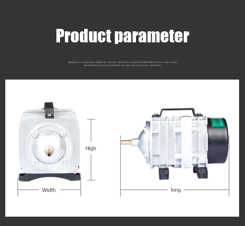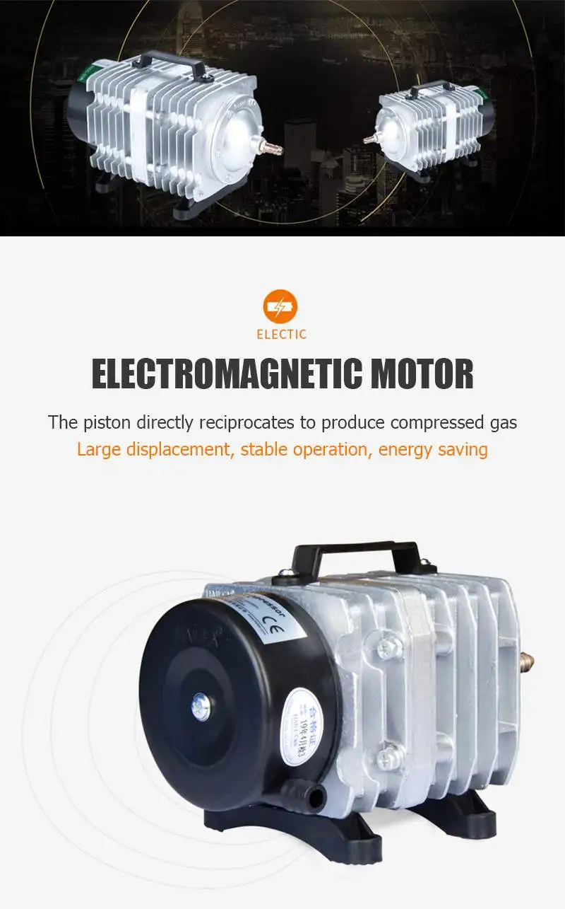 -Управляется электрическим магнитным двигателем, принимает прямое взаимное движение для производства воздуха и более разумной структуры.