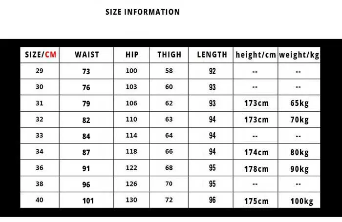 Таблица размеров
