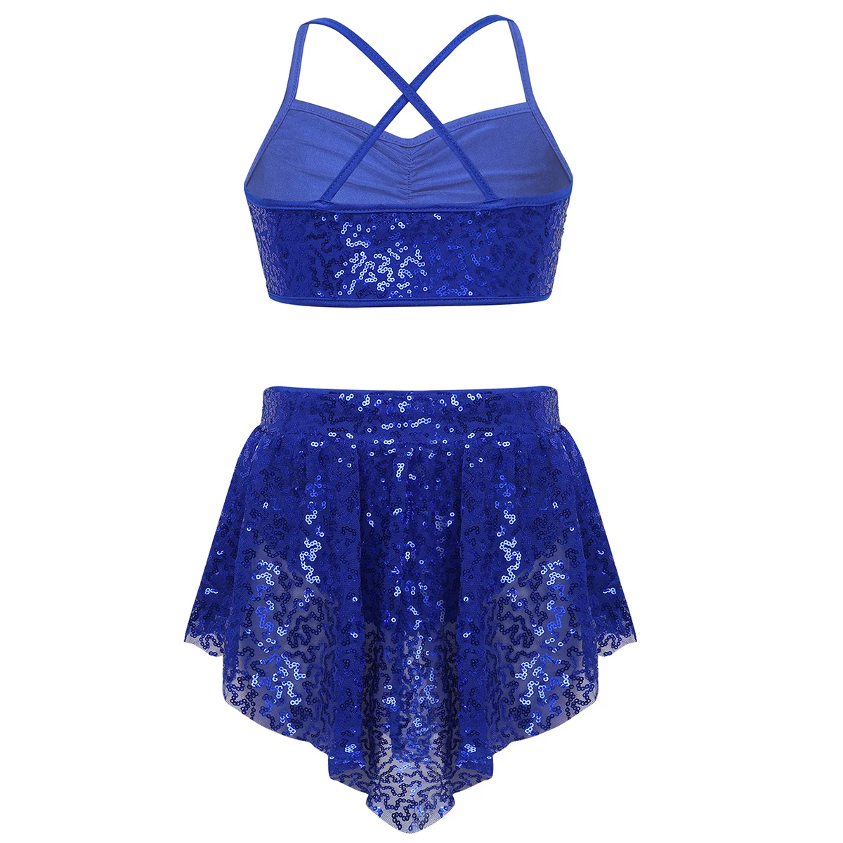 1 многослойная сетчатая юбка с асимметричным подолом со встроенными Низами. Красивый танцевальный костюм для вашей девочки.
