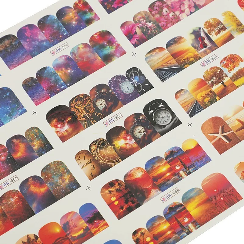 12 пар стикеров для ногтей летние пляжные наклейки для воды звездное небо полное покрытие Переводные инструменты для ногтей
