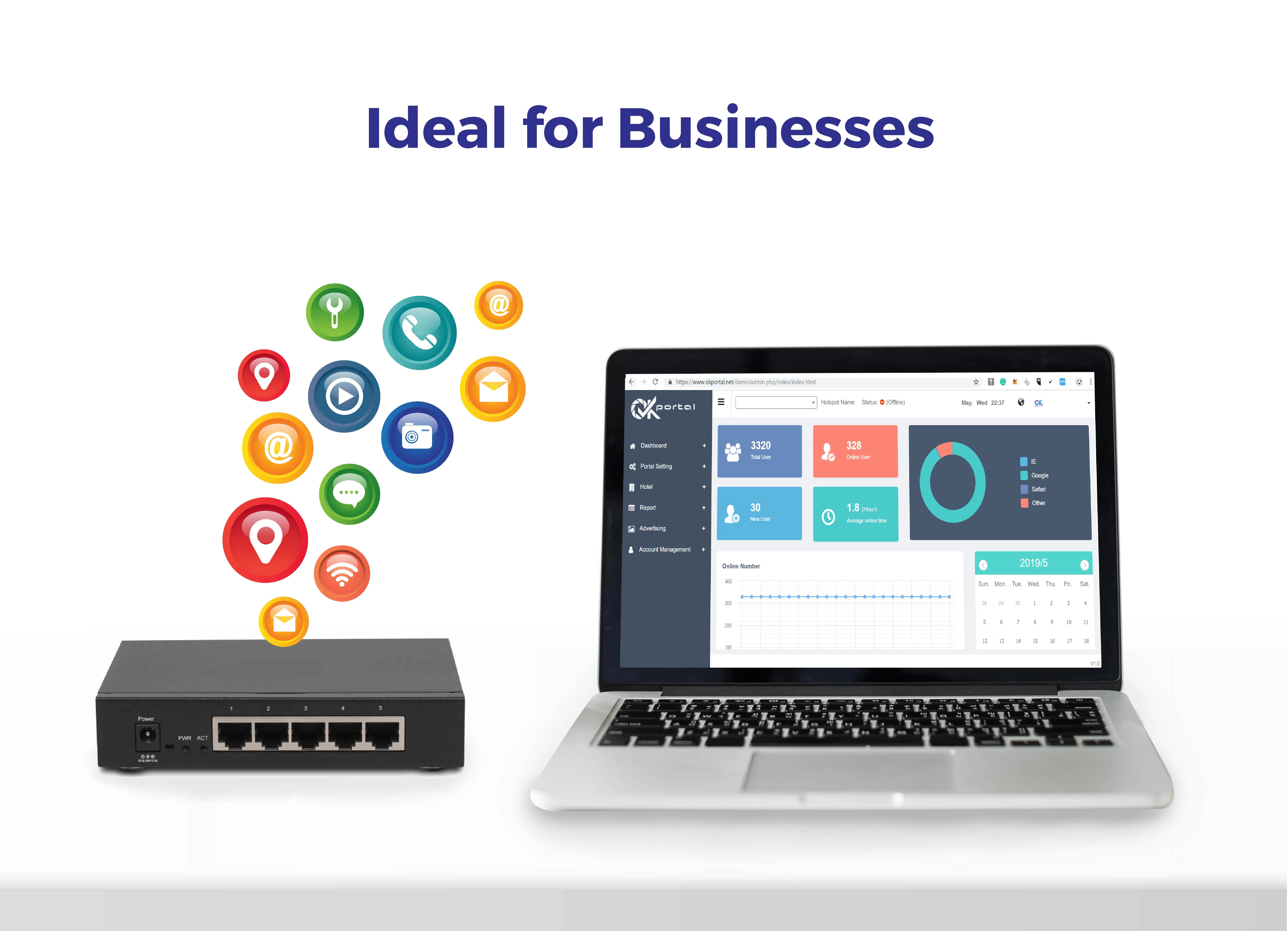 MikroTiK Smart Router оснащает вашу систему Wi-Fi высоким уровнем безопасности, управления и маркетинговых функций. Это также позволяет вам иметь рекламные пространства, которые вы можете использовать для демонстрации онлайн-рекламы. Простая установка и простота в использовании Mikrotik Smart Router работает с программным обеспечением OKportal, чтобы помочь вам: 1. Повышение уровня удовлетворенности ваших посетителей и клиентов 2. Продвигайте свой бизнес в интернете и связывайтесь с вашими клиентами 3. Генерирует Пассивный доход от цифровой рекламы (в зависимости от того, насколько много людей и много посетителей вашего бизнеса) Технические характеристики изделия: Проводная/кабель портал Максимальное количество пользователей (рекомендуется) = 150 человек 2 ядра = 880 МГц; RAM = 256 Мб 1 WAN, 1 By-Pass, 3 точки доступа 5x1Gbps Подходит для: -Рестораны и кафе -Супермаркеты и розничные магазины -Гостиницы и офисы Особенности: -Точку доступа Wi-Fi аутентификации -Вход через социальные сети -Клиент программное обеспечение для управления
