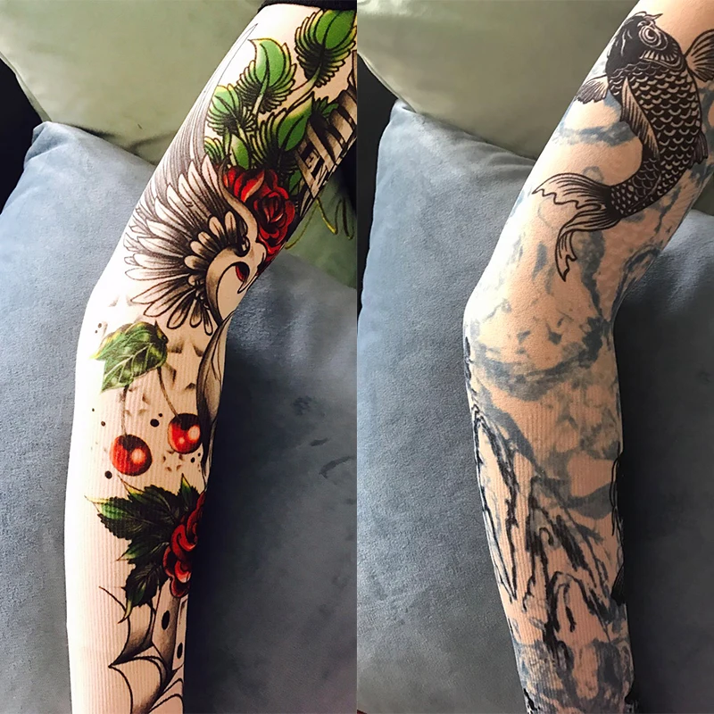 Летняя уличная одежда для вождения, унисекс, с ледяным рукавом, УФ-защита, высокая эластичность, дышащая татуировка, принт на рукавах