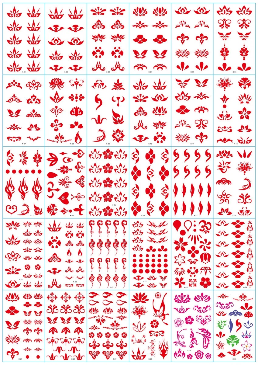 Количество: 30 шт./компл. Материал: бумага татуировки Размер: 5,7*9,7 Упаковка: полиуретан с открытыми порами