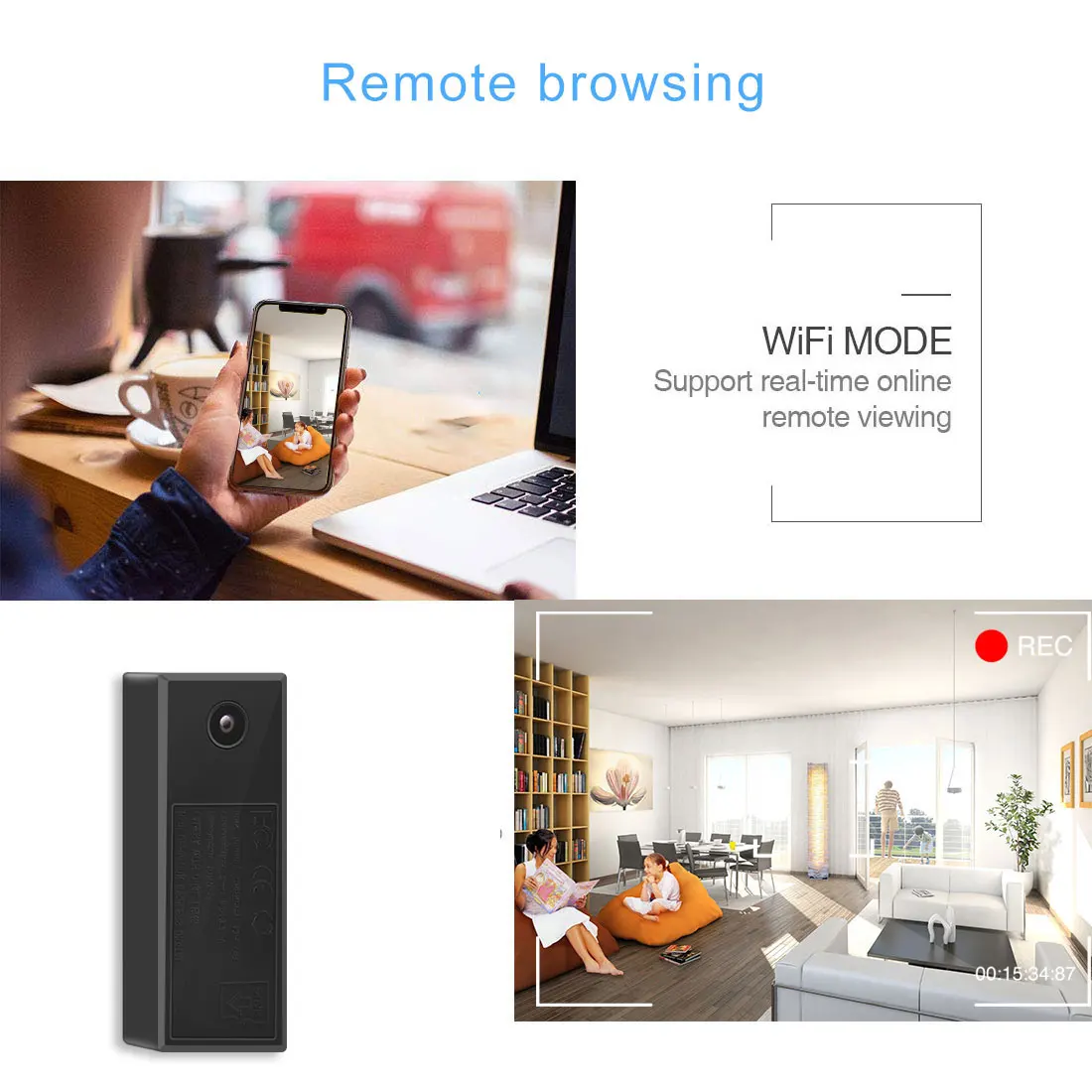 Артикул: Мини wifi ip-камера Wifi: Android / IOS Пиксели: 1080P Разрешение видео: 1080 P / 720 P / 640 P / 320 P Формат видео: AVI Формат сжатия: H.264 Ангел: 90 градусов Расстояние съемки для обнаружения движения: прямая линия 5 м Мощность потребление: 240 mA/3,7 V Температура хранения:-cetigade 10 50 градусов Память: карты памяти/карты Micro SD (максимальная поддержка 128 ГБ) Системы: Windows Батарея: Встроенная перезаряжаемая литиевая батарея Батарея 400 мА-ч