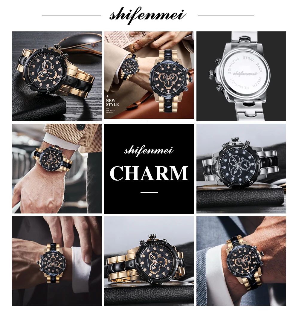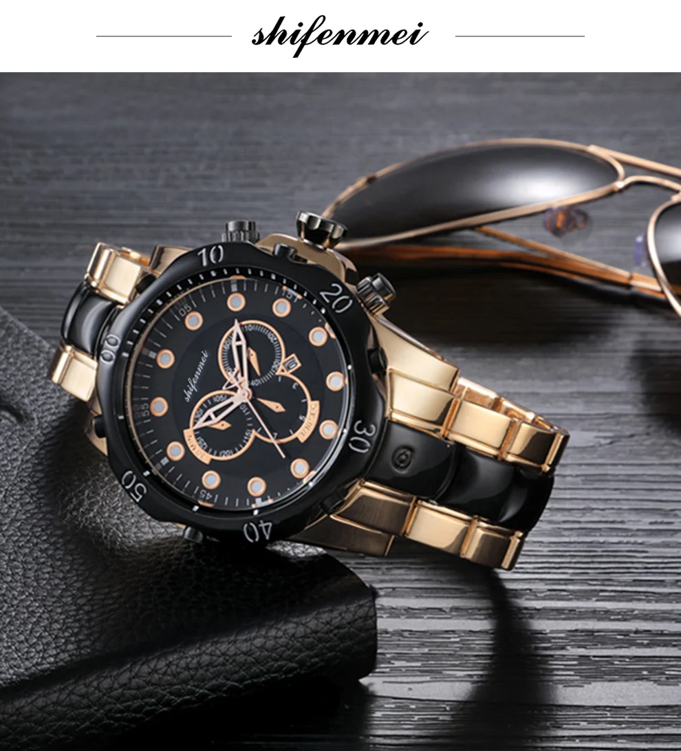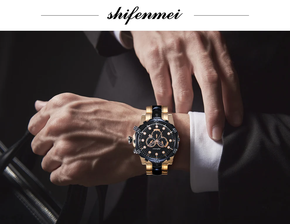 Мужские кварцевые наручные часы Shifenmei, деловые часы в стиле милитари из нержавеющей стали с ремешком для отдыха