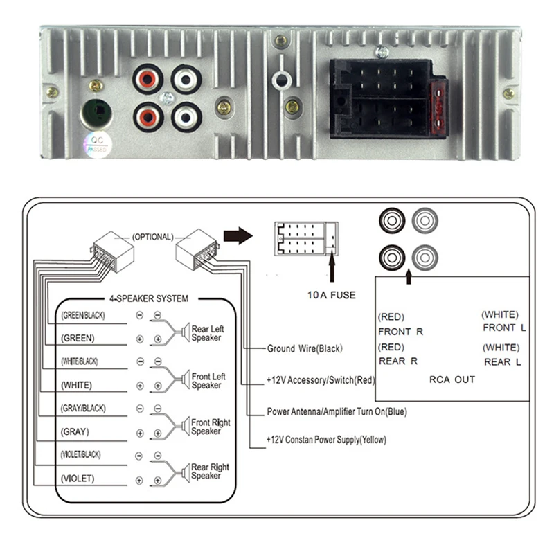 Переднее входное отверстие AUX аудио и задний Терминал L/R аудио RCA выходное отверстие.