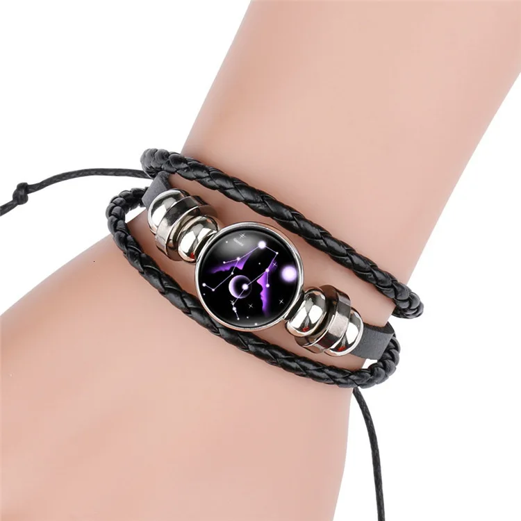 Винтажный панк 12 Созвездие браслет мужской кожаный Прямая поставка