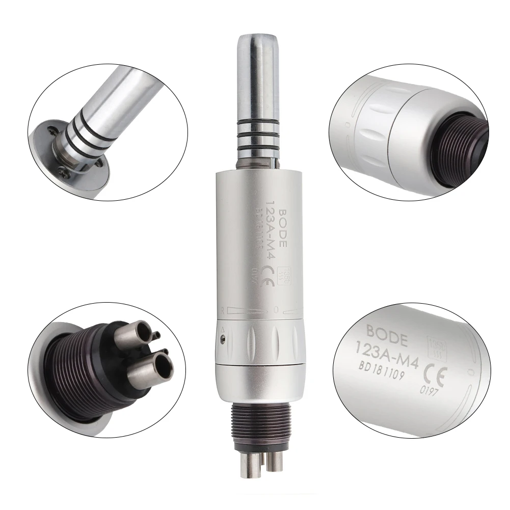 Особенности: Бренд: BODE Тип наконечника: низкая скорость Тип распыления: Внутренний водный спрей Тип патрона: ручной патрон Совместимость шланга: 4 отверстия (Midwest) M4 Источник питания: пневматический/Воздушный Давление воздуха: 0,30 МПа-0,35 МПа Скорость вращения: ≥ 18,000р/мин Bur применимо: Φ2.345-2,355 мм Шум: ≤ 70 дБ Предназначение для использования/специализация: стоматологическая лаборатория/стоматология