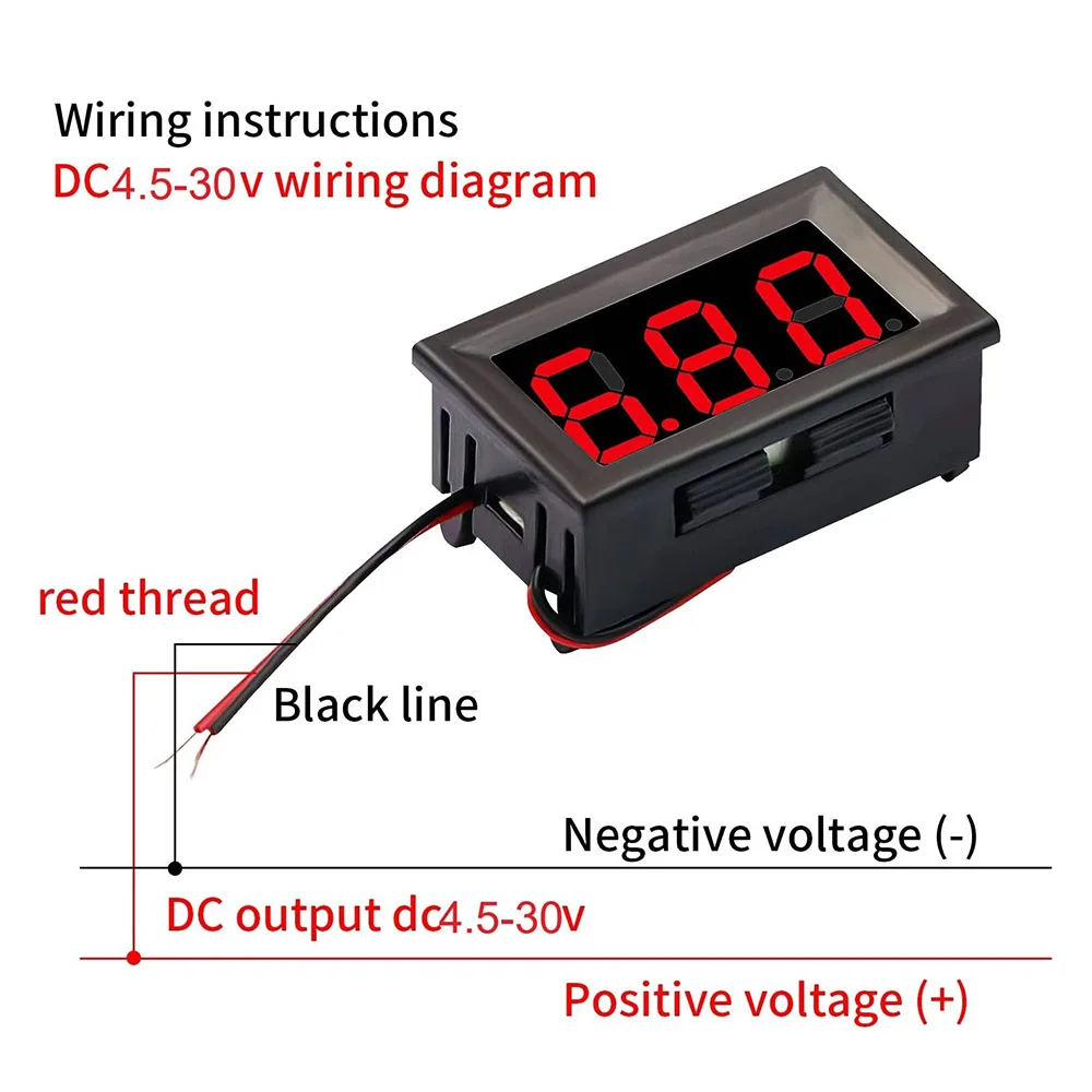 30 В-это максимальное рабочее ограниченное напряжение вольтметра, пожалуйста, оставьте достаточный запас при работе, чтобы избежать постоянного повреждения вольтметра из-за электрической искры, пульсации источника питания, или другие слишком высокие резкие изменения напряжения.
