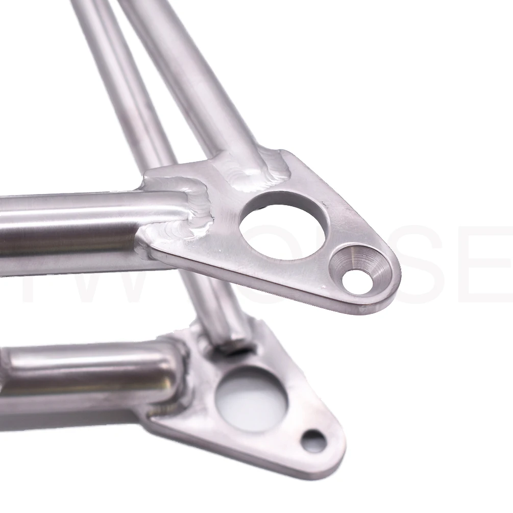 Изготовлен из ультра-светильник Ti3Al2.5V титанового сплава, как правило, для использования в аэрокосмической промышленности Разработан, чтобы обеспечить превосходную жесткость и при этом поглощать дорожный шок, чтобы дать вам преимущество производительности Приблизительный вес: 450 г-460 г, сохранить 330 г-350 г, чем ваш оригинальный стальной задний треугольник