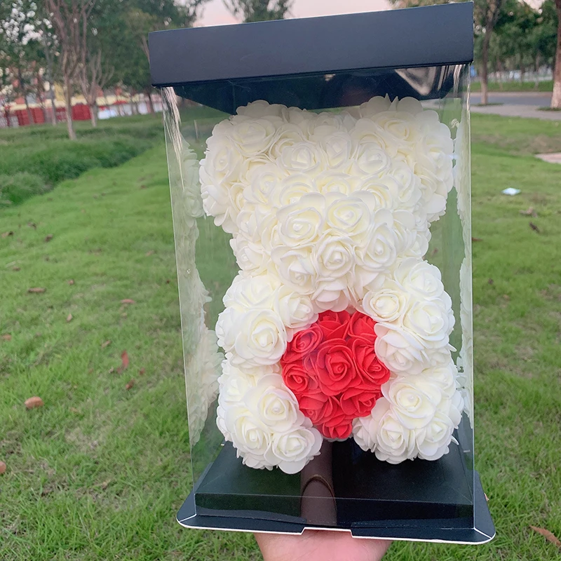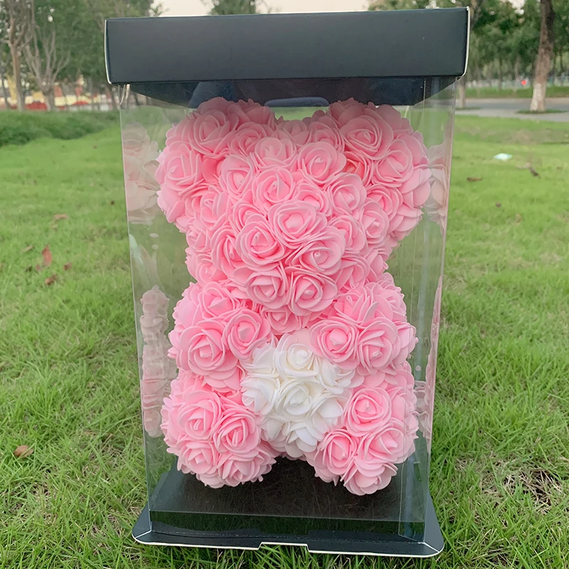 Мультфильм 25 см красная роза медведь Искусственные из ПЭ цветы плюшевый мишка День Святого Валентина Дети подарки на день рождения для рождества домашний декор Прямая поставка