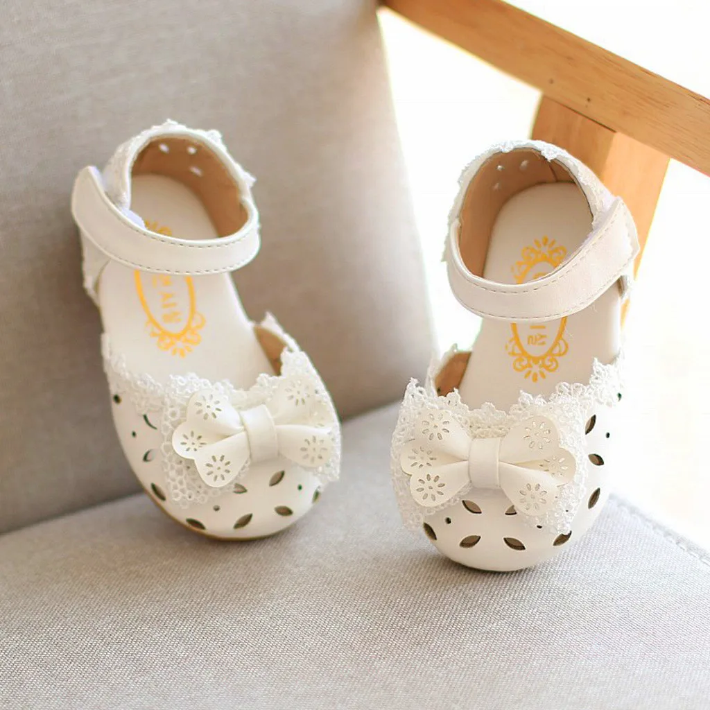 Одежда для маленьких девочекЭлегантные босоножки принцессы с цветочным принтом и бантом