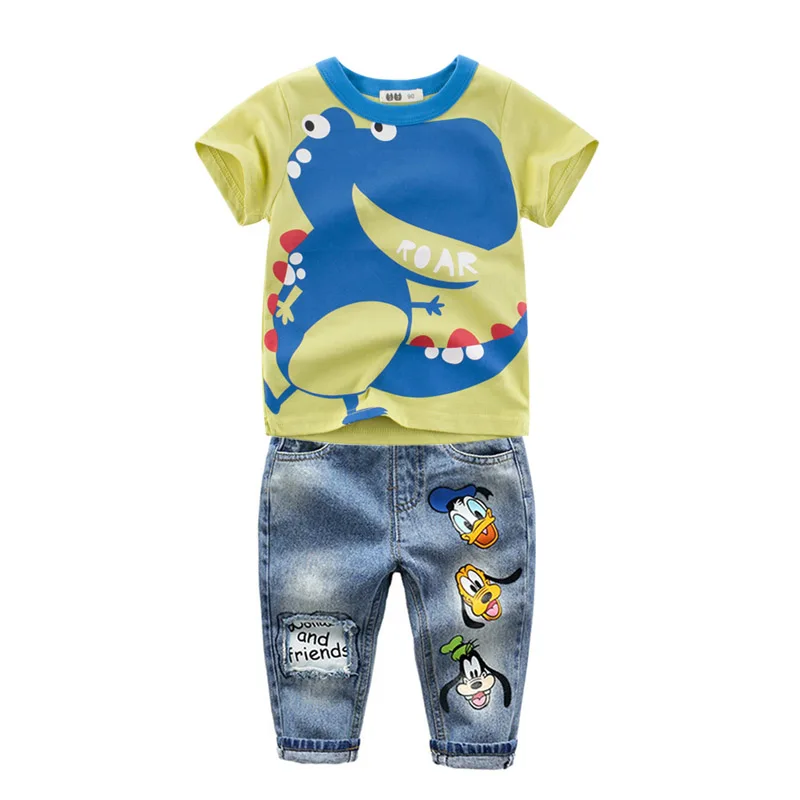 Летняя новая стильная детская одежда, хлопковая детская одежда с короткими рукавами и рисунком динозавра для мальчиков, комплекты одежды с круглым вырезом для мальчиков