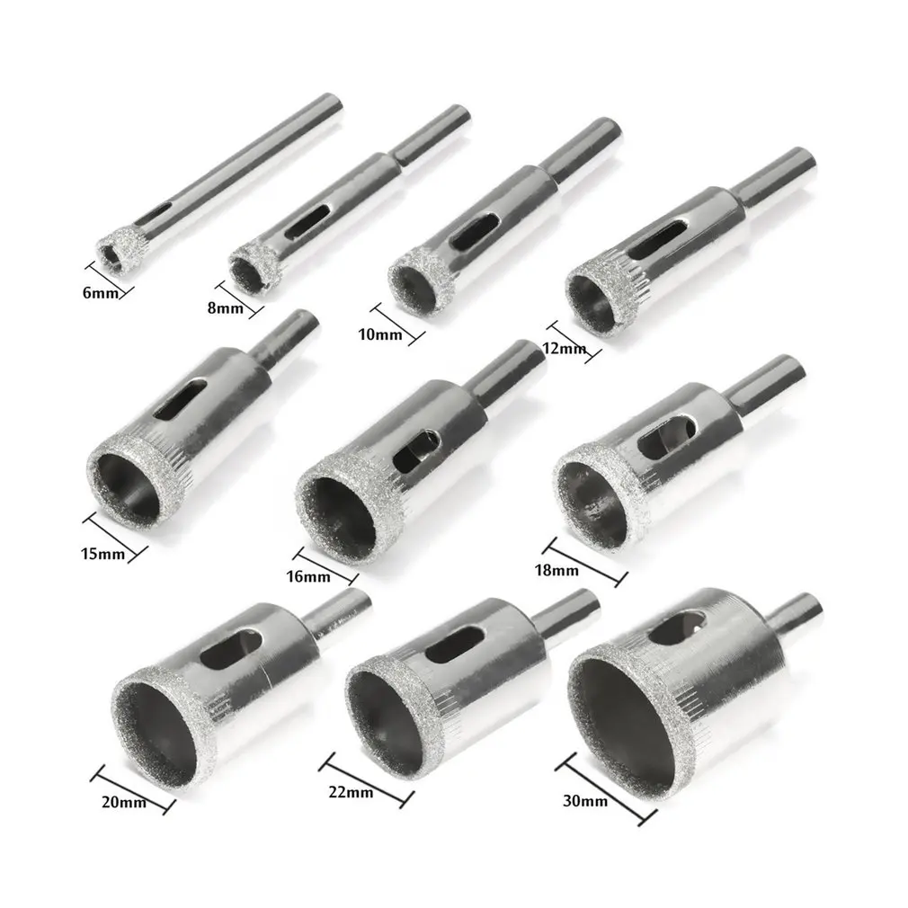 10 шт./компл. набор алмазных сверл 6 мм-30 мм Алмазное покрытие ядро отверстие пилы Сверла инструмент резак для стеклянной мраморной плитки