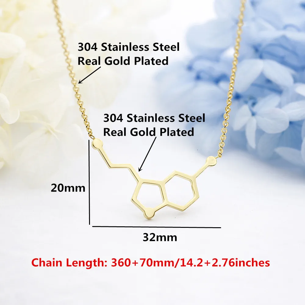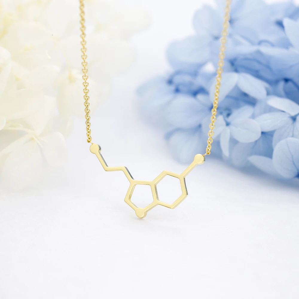 Happy Hormone Serotonin Molecule Necklace Women Stainless Steel Pendant Student Scientific Jewelry Back to School First Day Gift