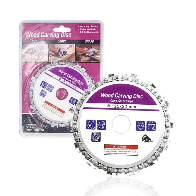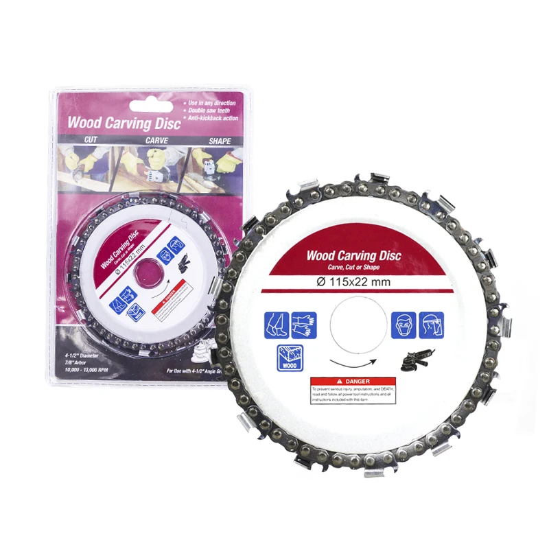 Шлифовальный диск цепная пила принимает мышцы работы резки, резьбы, удаления и скульптуры древесины, пластмассы, льда и твердой резины с их скоростью и маневренности. Лезвие цепной пилы удерживается между двумя стальными пластинами, что обеспечивает надежное сцепление для резьбы. Независимо от зерна или узлов лезвие легко прорезается через материал для пользователя. Наш 22 зуб обеспечивает гладкую «готовую» поверхность, которая отлично подходит для минимального шлифования после этого. Цепи могут быть заточены с помощью пилы или заменены по мере необходимости. Отлично подходит для изогнутой работы, как внутри чаши, для быстрого удаления отходов.