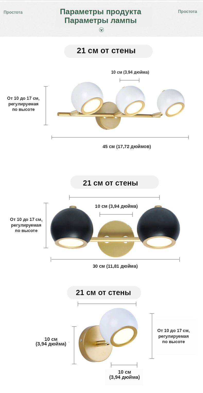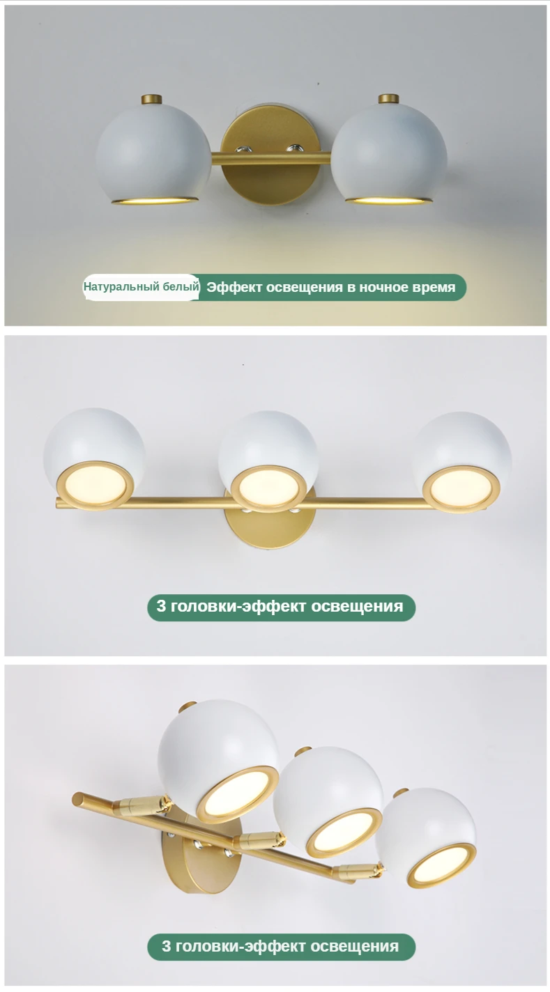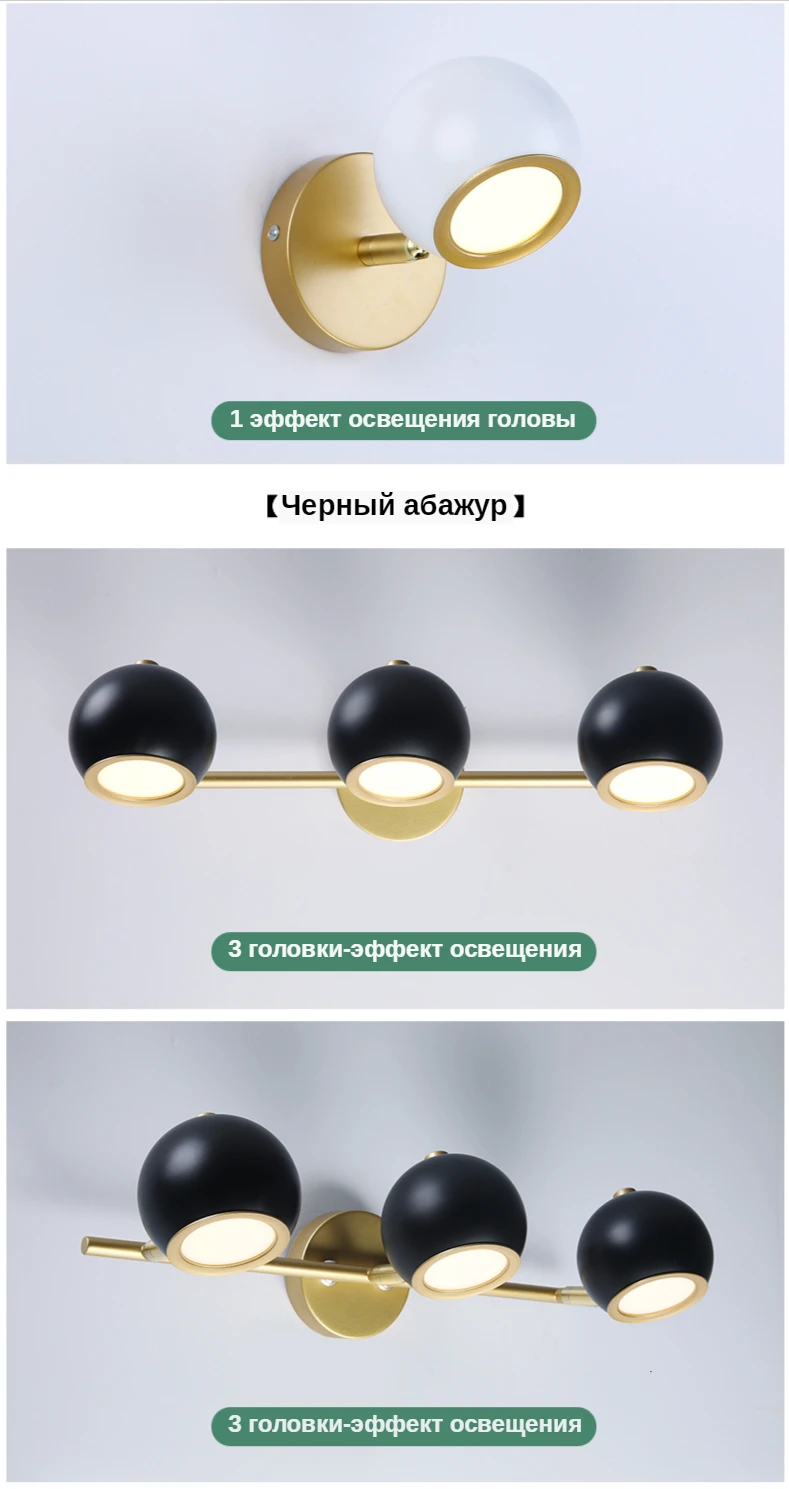 Модель: светодиодный настенный светильник Диаметр: 1 головка: 10 см (3,94 дюйма) 2 головки: 30 см (11,81 дюйма) 3 головки: 45 см (17,72 дюйма) Цвет абажура: черный и белый Цветовая температура: теплый/холодный/натуральный белый Регулировка абажура: 180 ° вверх и вниз регулировка Светильник источник: в комплекте (3 цвета светодиодный-сторонние микросхемы) Уважаемый, этот настенный светильник имеет теплый/холодный/натуральный белый 3 цвета, вы можете включить/выключить светильник, чтобы изменить цвет.