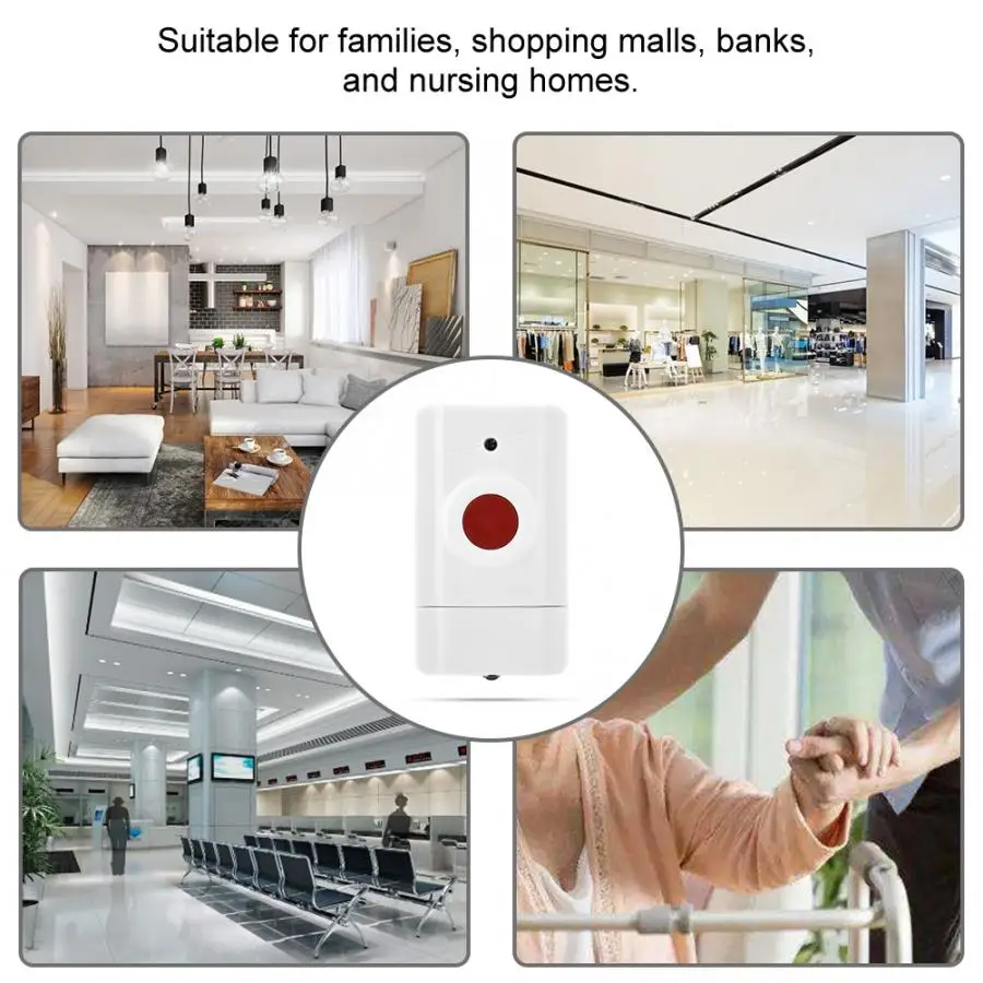 Встроенный высокопроизводительный беспроводной сигнальный передатчик аварийной кнопки может быстро отправить сигнал на панель управления. Совместим с беспроводным хостом сигнализации, расстояние передачи беспроводного сигнала далеко. Кнопка может быть сопряжена с беспроводным дверным звонком, и дверной звонок излучает желанный рингтон или язык при нажатии кнопки. Подключите кнопку к панели управления, чтобы узнать, когда происходит аварийная ситуация, нажмите кнопку, чтобы получить уведомление в один клик сигнал. Подходит для семьи, торговых центров, банков и домов для медсестер.