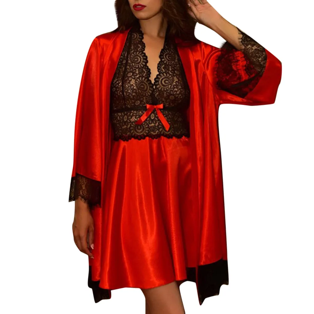 Женский пижамный комплект из 2 предметов Сексуальная атласная Женская пижама с кружевом нижнее белье Babydoll