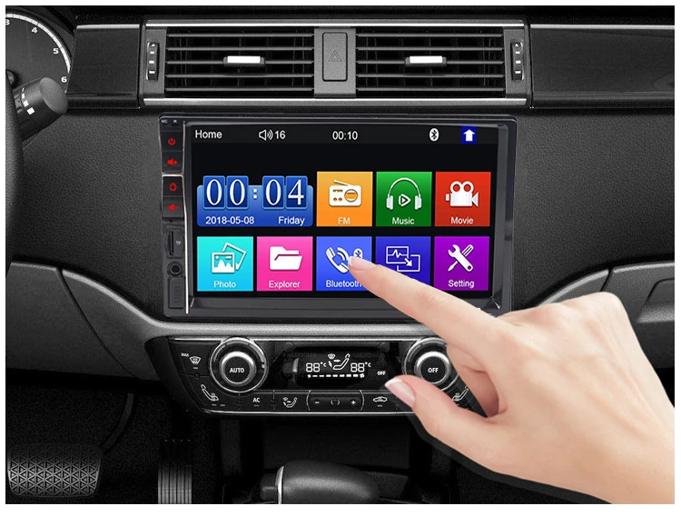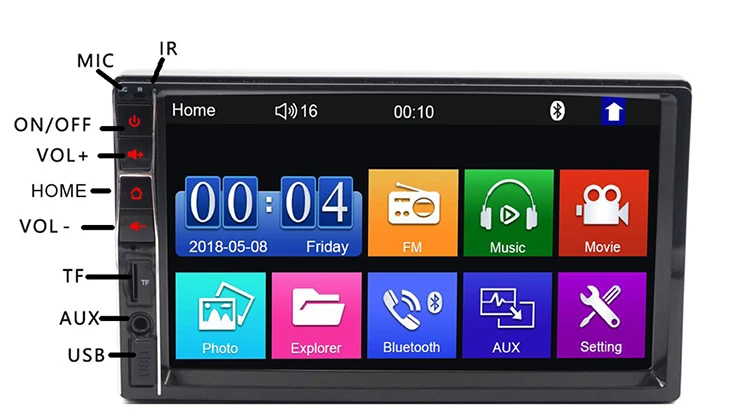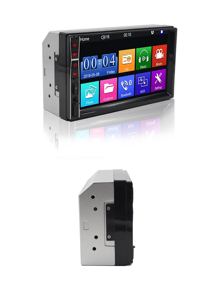 7 дюймов 2 din HD автомобильное радио MP5 плеер с цифровым сенсорным экраном. Поддержка беспроводного подключения Bluetooth и функции ручного бесплатного телефонного звонка. Поддержка передачи FM-Навигация голоса и музыка могут быть отправлены непосредственно на ваши Автомобильные колонки, что делает звук легче слышать. Поддержка TF карты (до 32 Гб) слот и стандартный USB интерфейс. Можно заряжать мобильный телефон или другие usb-устройства. Интерфейс AUX совместим с большинством флеш-накопителей USB, может воспроизводить различные аудио и видео форматы.