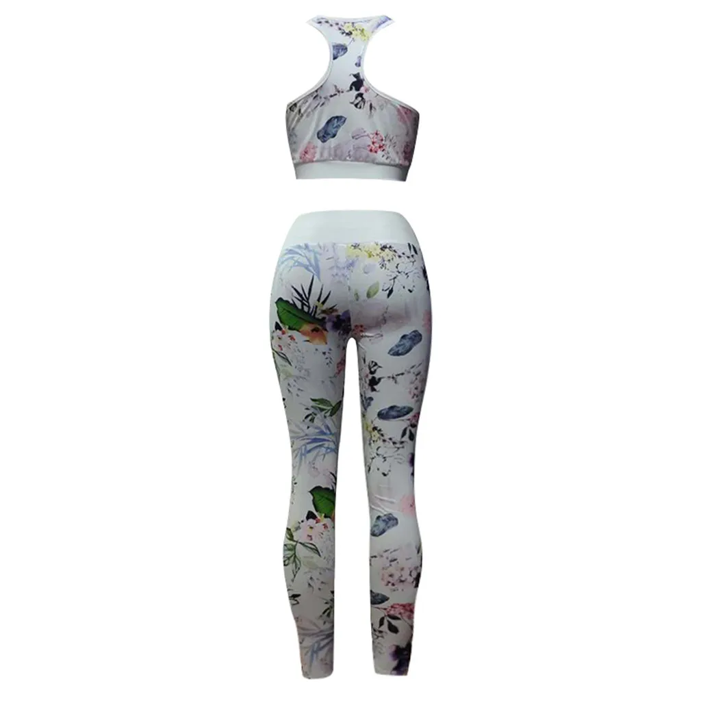 Women's Digital Printing Vest Trousers Sports Suit Yoga Pants Fitness Suit
