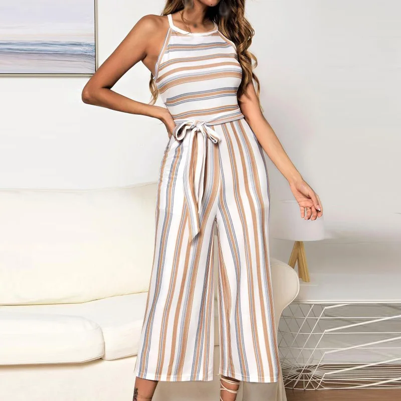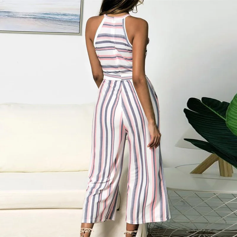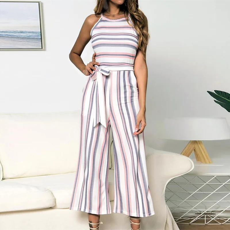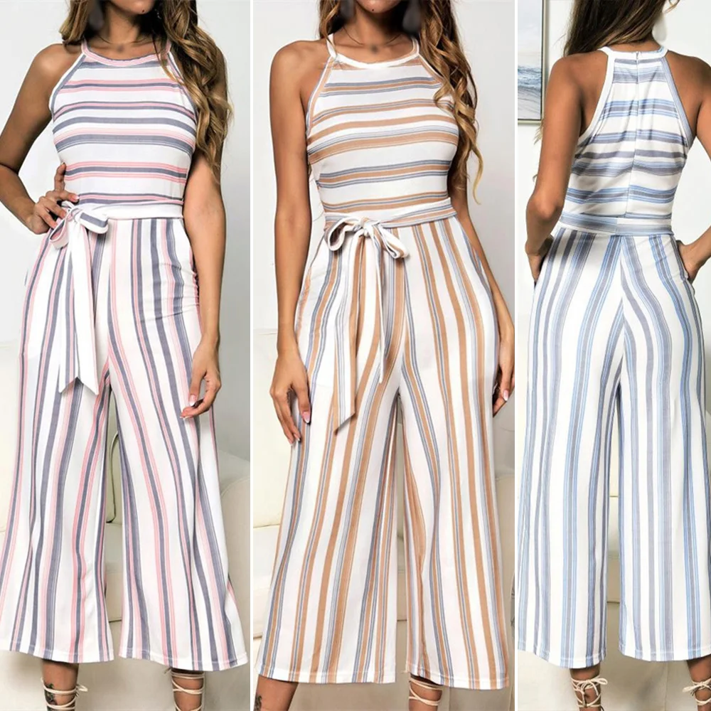 * Описание товара: женская одежда для девочек, Модный Полосатый, без рукавов, круглый вырез, вечерние, комбинезон/комбинезон, праздник