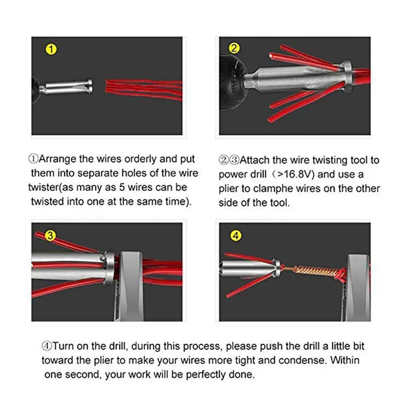 Характеристика: 1. Изготовлен из высококачественного высокоскоростного стального материала. Хорошая производительность и высокое качество. 2. Повысить эффективность и сделать вашу работу проще, экономя вас от повторяющихся работ скручивания и скручивания проволоки. 3. Инструмент для скручивания проволоки может быть прикреплен к электрической дрели и легко и эффективно функционирует с помощью простых шагов. 4. Сочетание изоляционной ленты Овощечистка и инструмент для скручивания проволоки. Спонтанно снимите изолирующее пальто проводов перед скручиванием. 5. Портативный. Простота в эксплуатации. Как использовать: 1. Упорядоченно Расположите провода и поместите их в отдельные отверстия проволочного скручивания (до 5 проводов можно скрутить в одно и то же время). 2. Прикрепите инструмент для Скручивания Проволоки к электрической дрели (> 16,8 в) и используйте плоскогубцы для зажима проводов на другой стороне инструмента. 3. Включите сверло, во время этого процесса, пожалуйста, слегка нажмите сверло к плоскогубцам, чтобы сделать ваши провода более плотными и плотными. В течение одной секунды ваша работа будет совершена. Характеристики: Тип: инструмент для Скручивания Проволоки Материал: сталь Размер: 105x25x10 мм Количество: 1 шт. Комплектация: 1xautomatic twist line Примечание: Из-за различных мониторов и светового эффекта фактический цвет может немного отличаться от цвета изображения. Возможны отклонения на 0,5-1 см вследствие измерений вручную.