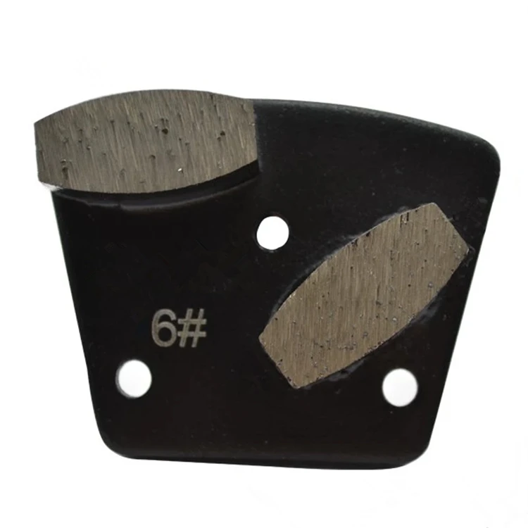 Трапециевидная алмазная шлифовальная обувь для бетона и пола терраццо Металлические стразы имеют высокую прочность, отличную износостойкость и низкий коэффициент трения. Металлические алмазы высокой эффективности шлифования и низкой силы шлифования генерируют меньше тепла в процессе шлифования. Применение: подходит для общего (бетона, камня) шлифования, в то время как в основном они используются для краски, клея, эпоксидного удаления и покрытия пола, высокое качество и высокая эффективность, длительный срок службы. Преимущество: очень эффективно для сложных ситуаций, таких как удаление очень стойкого покрытия. Характеристики: отличная износостойкость, низкая стоимость, лучшая отделка поверхности и т. д. Примечание: специальный логотип, размер сегмента и формы, установка доступна по запросу клиента. Номер товара: KT 6 # супержесткие алмазные шлифовальные туфли Материал: алмаз + металлический порошок Минимальное количество заказа: 9 шт./компл. Сегмент руководство по размерам: Семь видов: D25mm * H12.5mm * 2T/3T (мм) 24 мм * 14 мм * 8*2T/3T (мм) 40 мм * 11 мм * 10*2T (мм) 33 мм * 17/8 мм * 13*2 (мм) 33 мм * 17/13 мм * 8*2 (мм) Подключение: 3 X M6 или M8 или пустые отверстия. Машина: Быстрый консервировочный шлифовальный станок Сегмент зернистости: 6 # (чрезвычайно жесткий алмаз, супер острый) Твердость зернистости: мягкая связь, средняя связь, жесткая связь. Качество: международный стандарт качества Применение: бетон и Терраццо пол