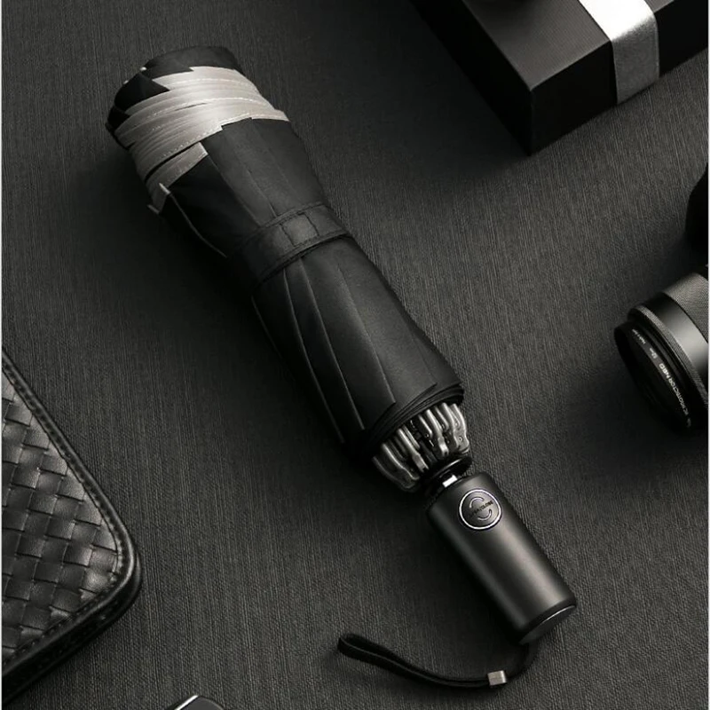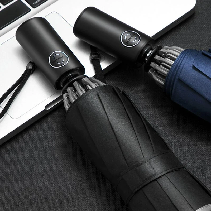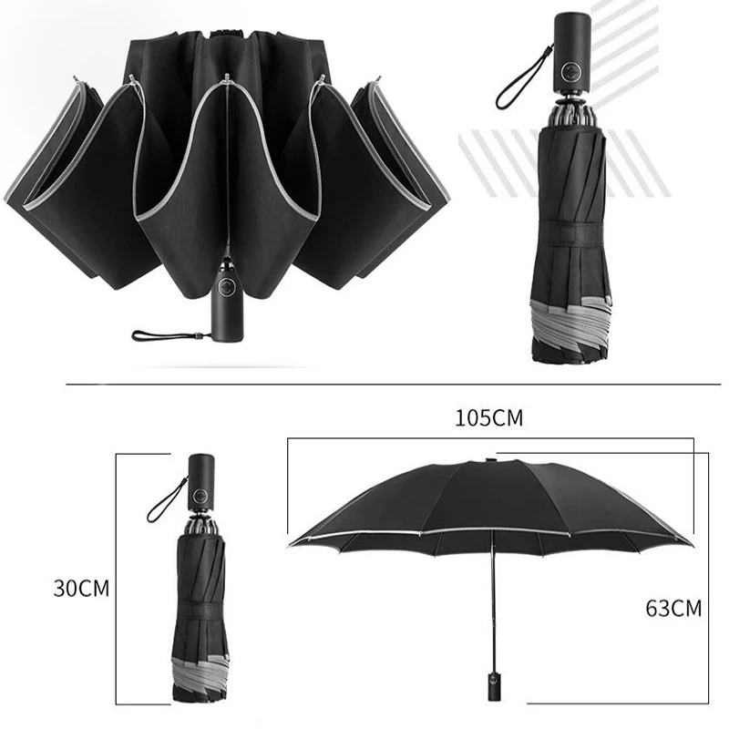 Название: полностью автоматический бизнес обратный зонтик Номер зонта: 10 костей Материал стойки зонта: алюминиевый сплав Материал зонта: ударная ткань Цвет: черный/синий/серый/коричневый Размер: ширина зонта 105 см, 30 см после складывания Вес: 420 г
