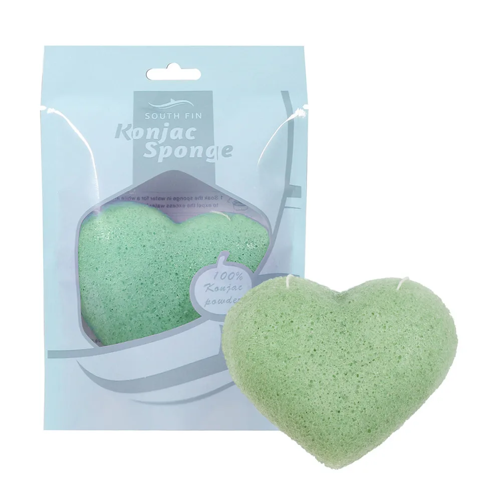 Natural Heart Shape Microfiber Fiber Face Wash Clean Sponge Puff Cleansing
