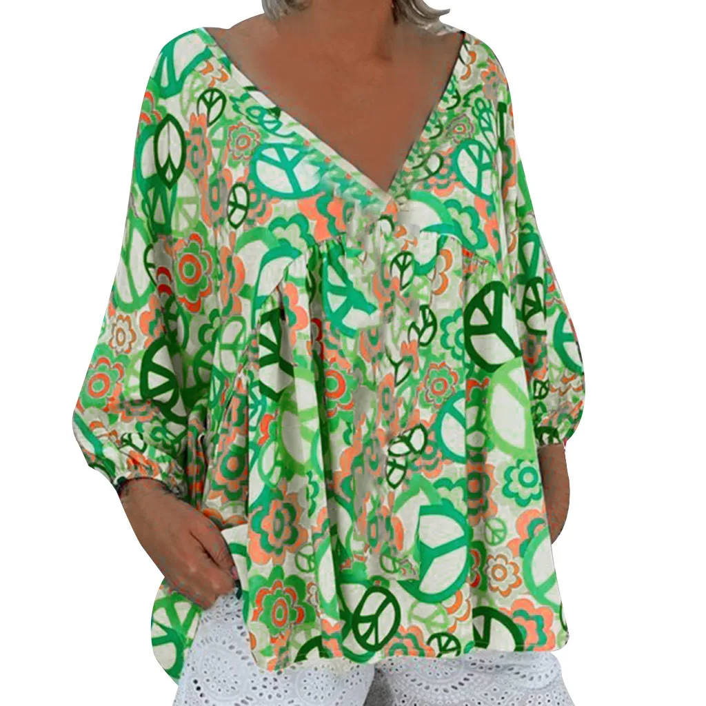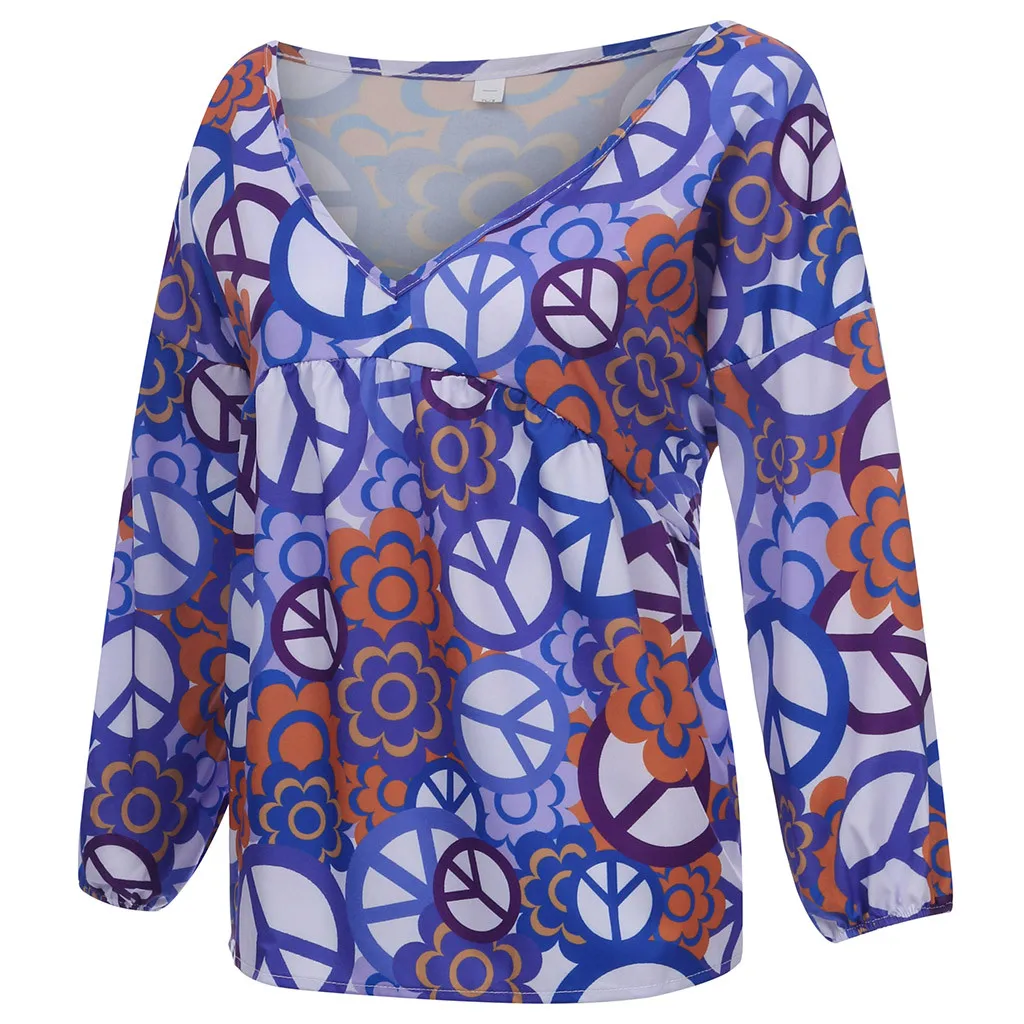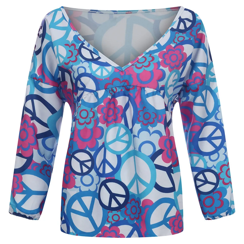 Женская модная блузка с длинным рукавом с цветочным принтом и v-образным вырезом
