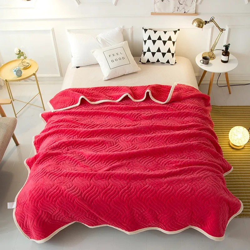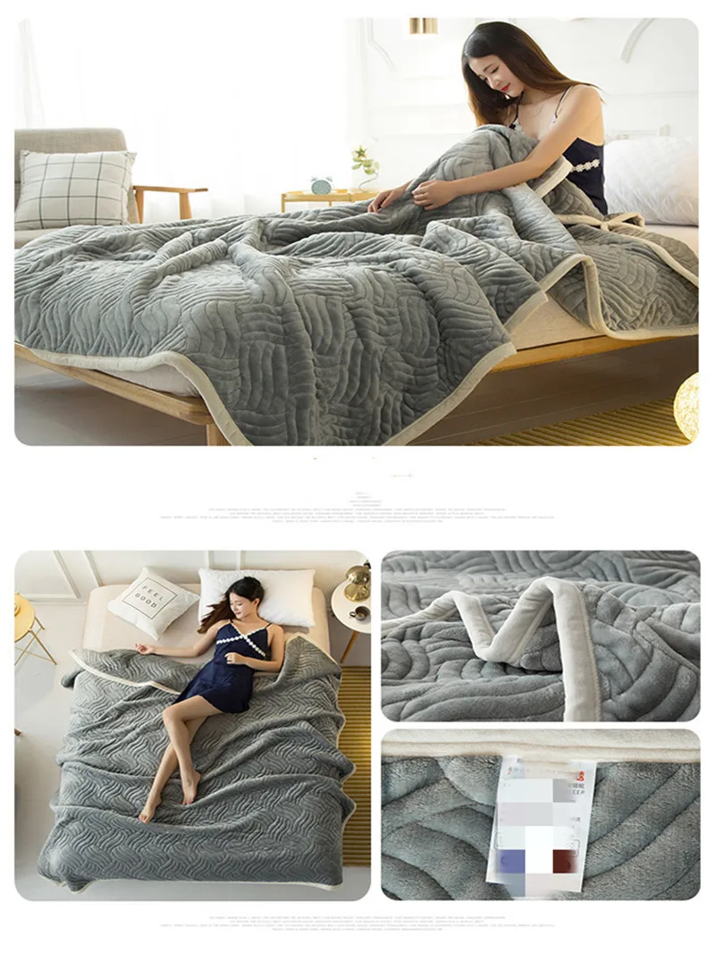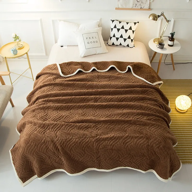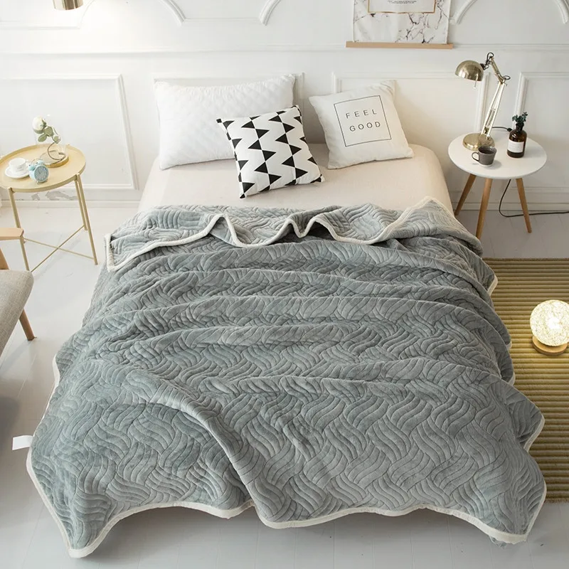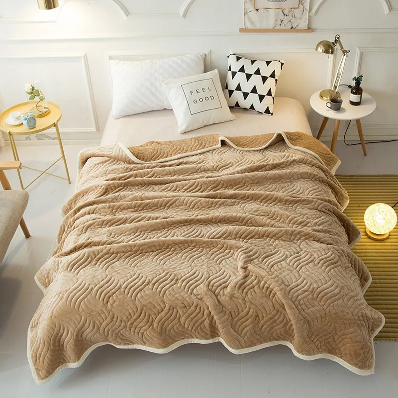 Однотонное бежевое фланелевое одеяло геометрическое толстое мягкое теплое покрывало для кровати с тиснением волнистое Двухслойное флисовое лоскутное домашнее текстильное изделие