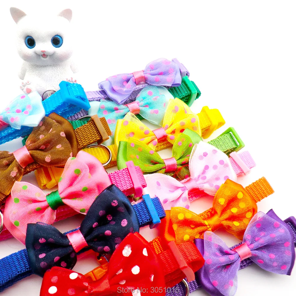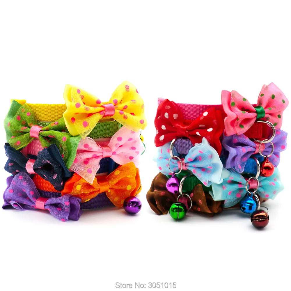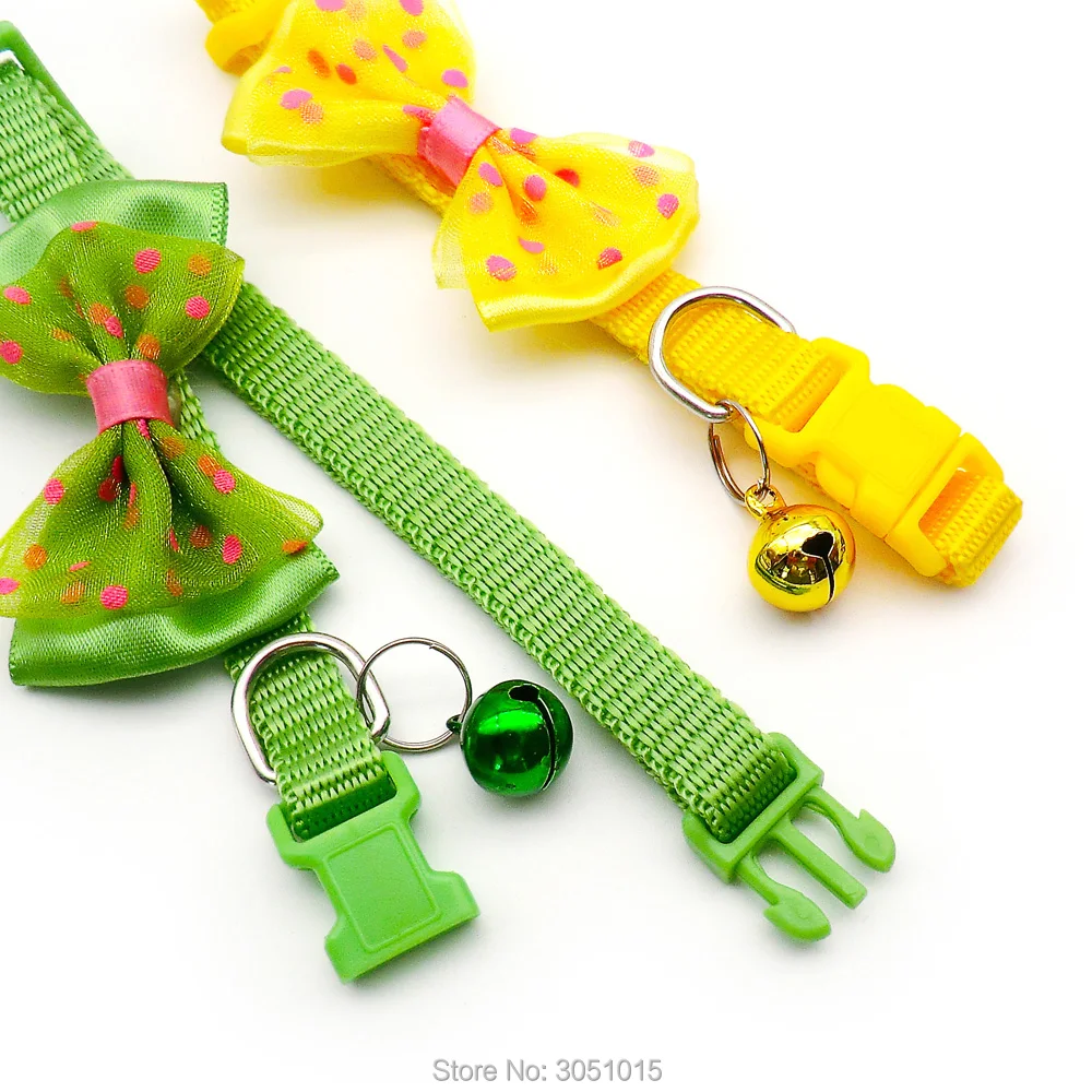 Оптовая продажа 100 шт Регулируемый полиэстеровый ошейник для собак ошейник для кошек с бантом ожерелье с колокольчиками ошейник для маленьких собак и кошек