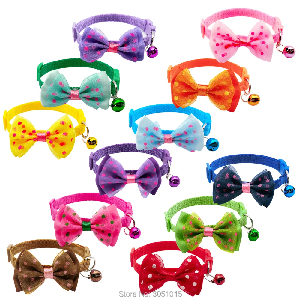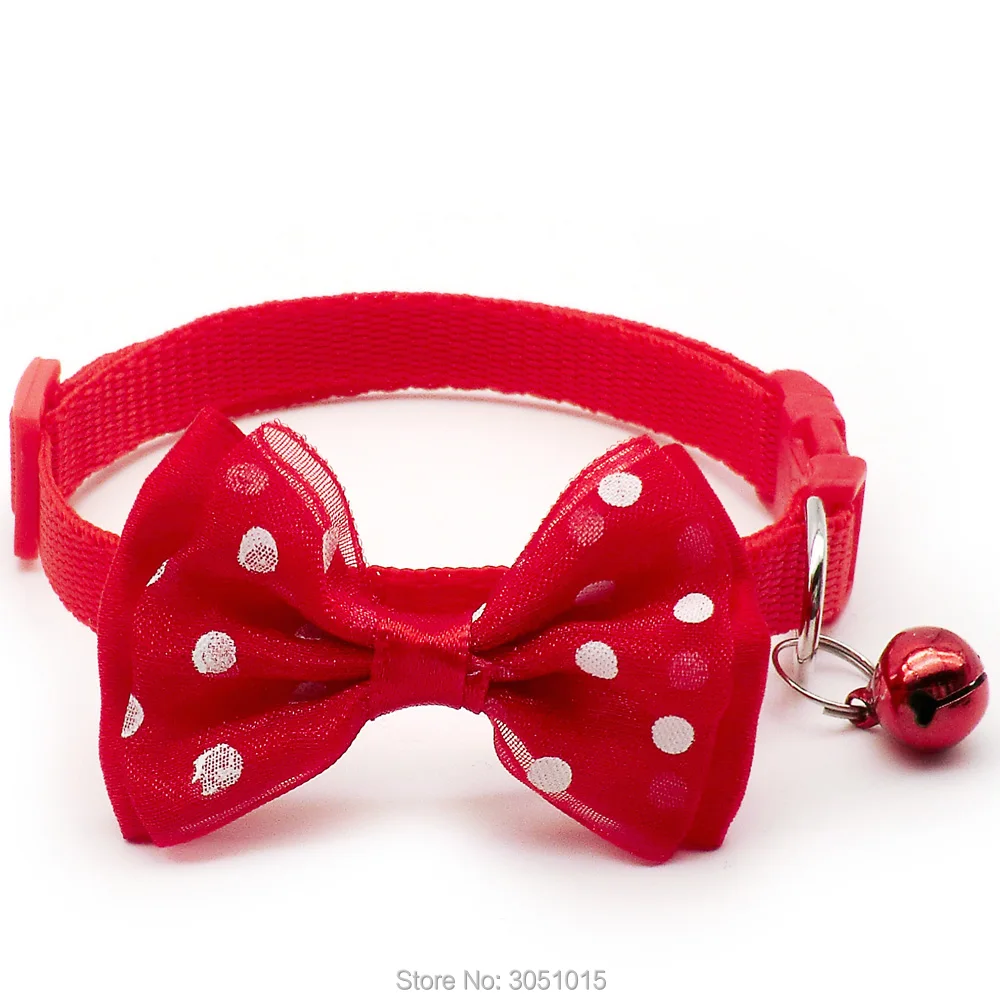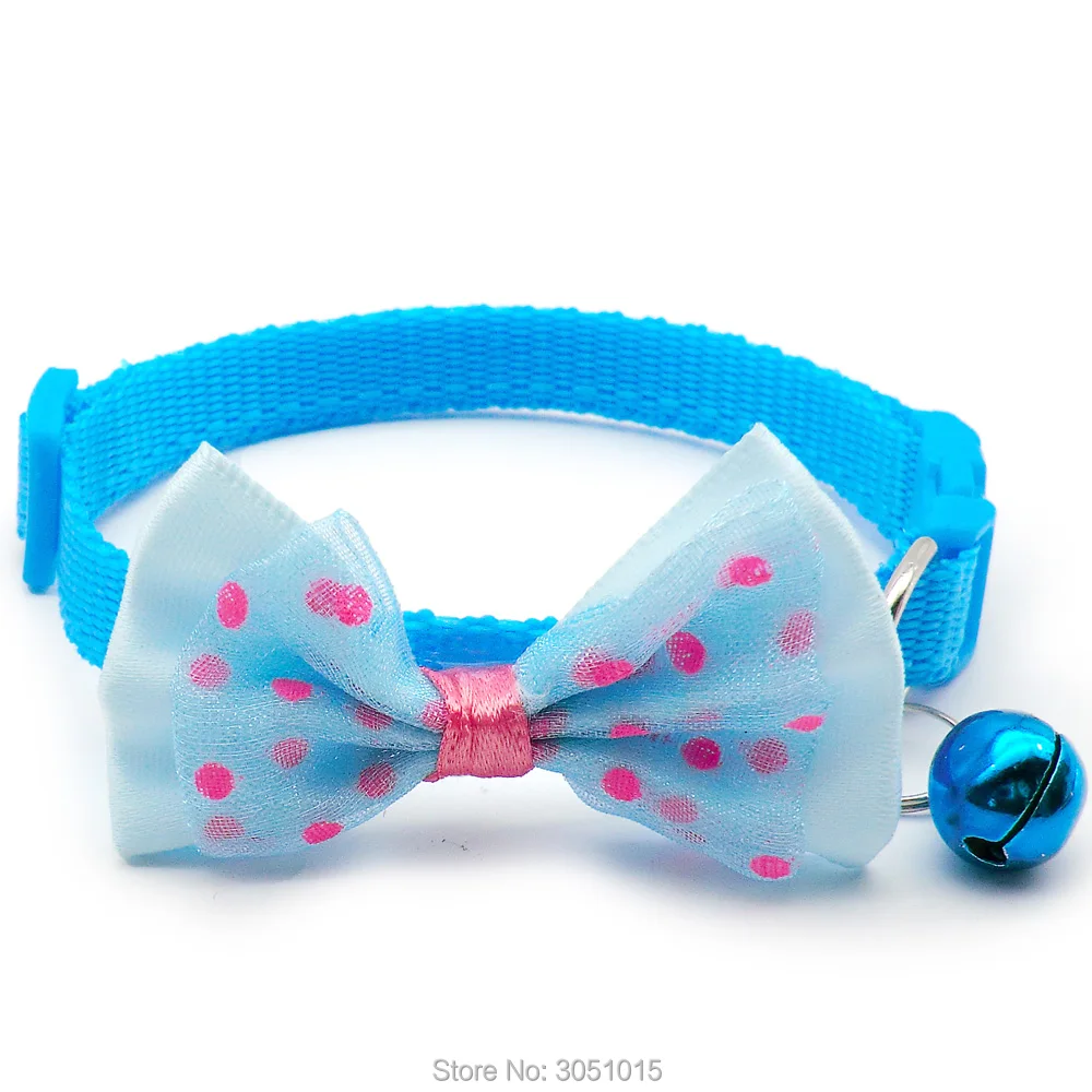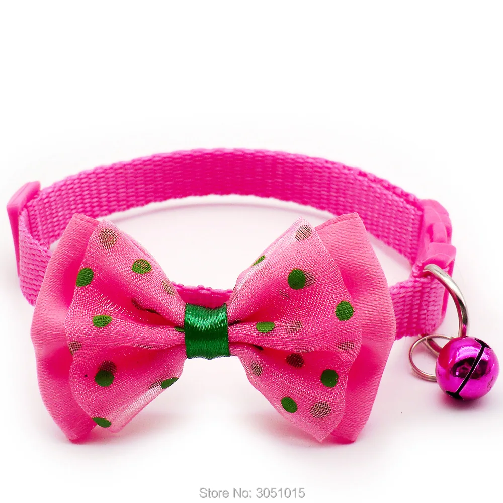 Оптовая продажа 100 шт Регулируемый полиэстеровый ошейник для собак ошейник для кошек с бантом ожерелье с колокольчиками ошейник для маленьких собак и кошек