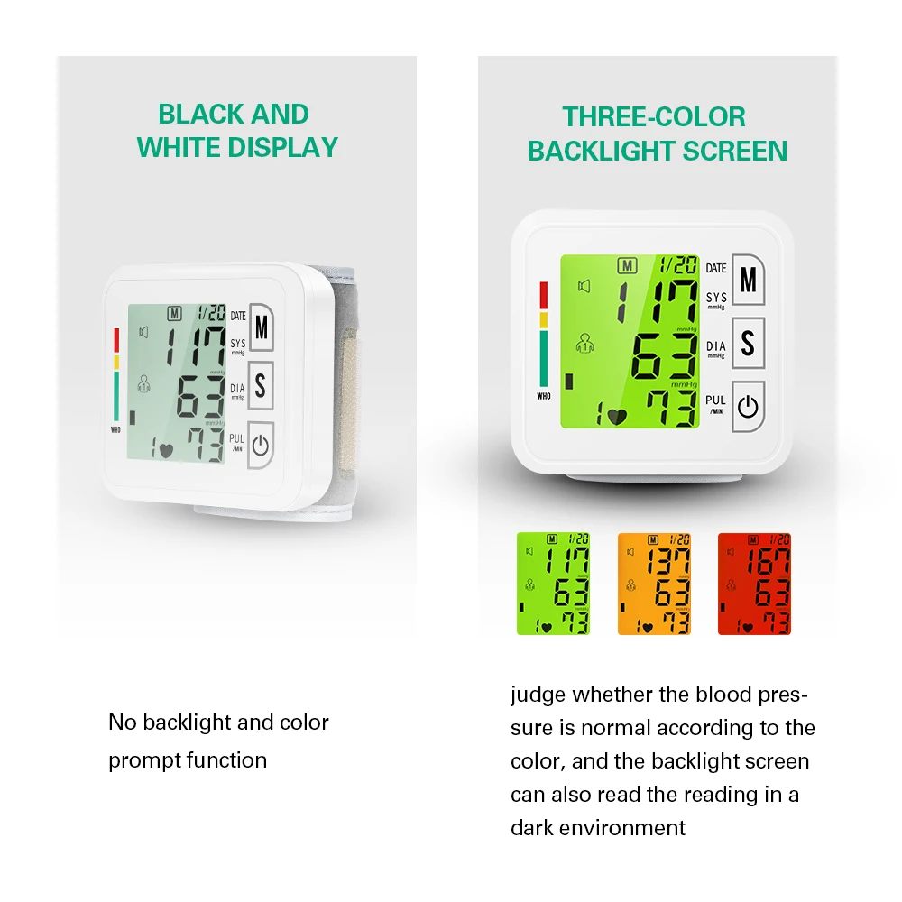 ※ Трехцветный экран с подсветкой показывает, является ли кровяное давление нормальным в зависимости от цвета, и показания экрана могут быть четко видны в темноте