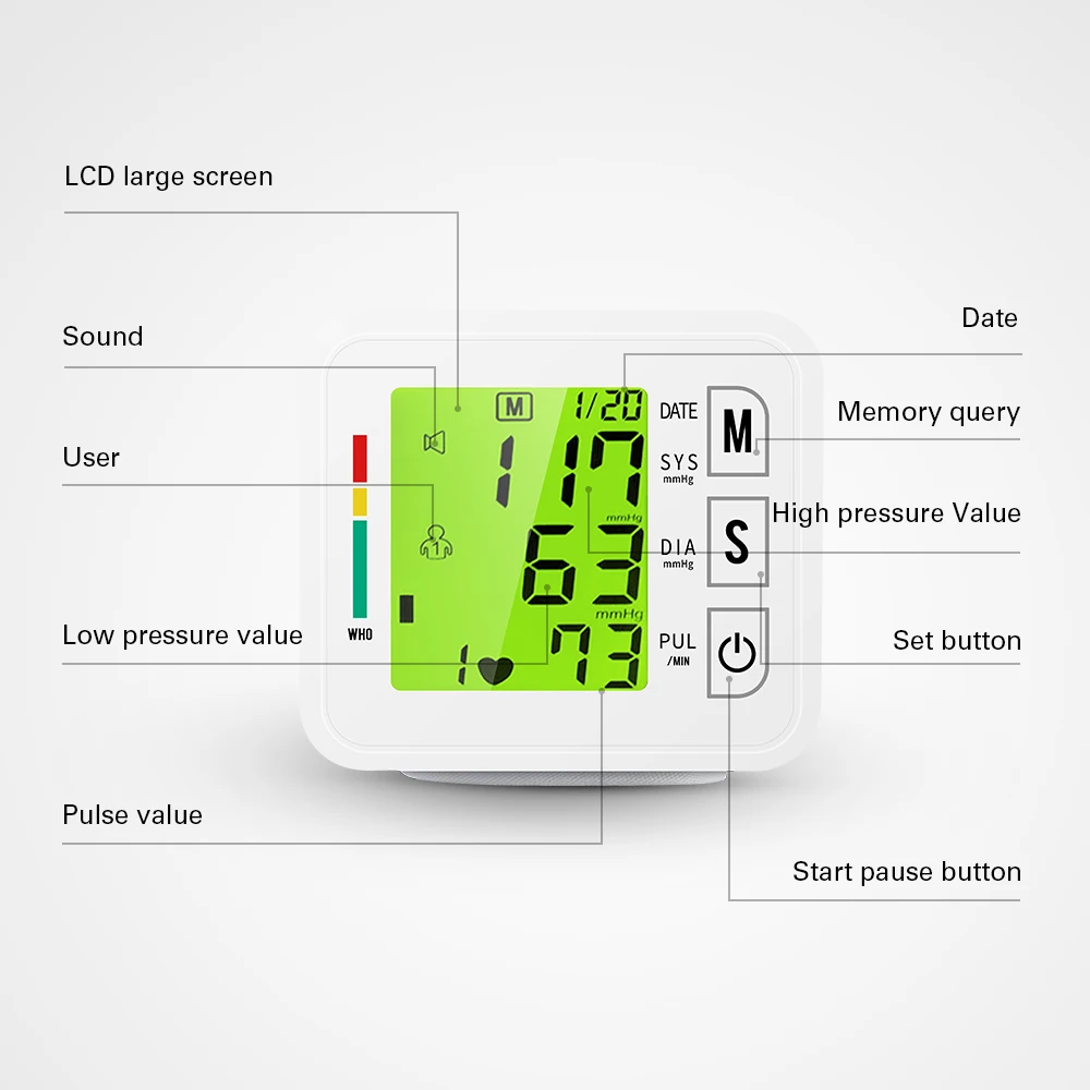 OLIECO Монитор артериального давления на запястье USB Перезаряжаемый цифровой Сфигмоманометр английский голос 3 подсветка напоминание 2 Пользовательская память