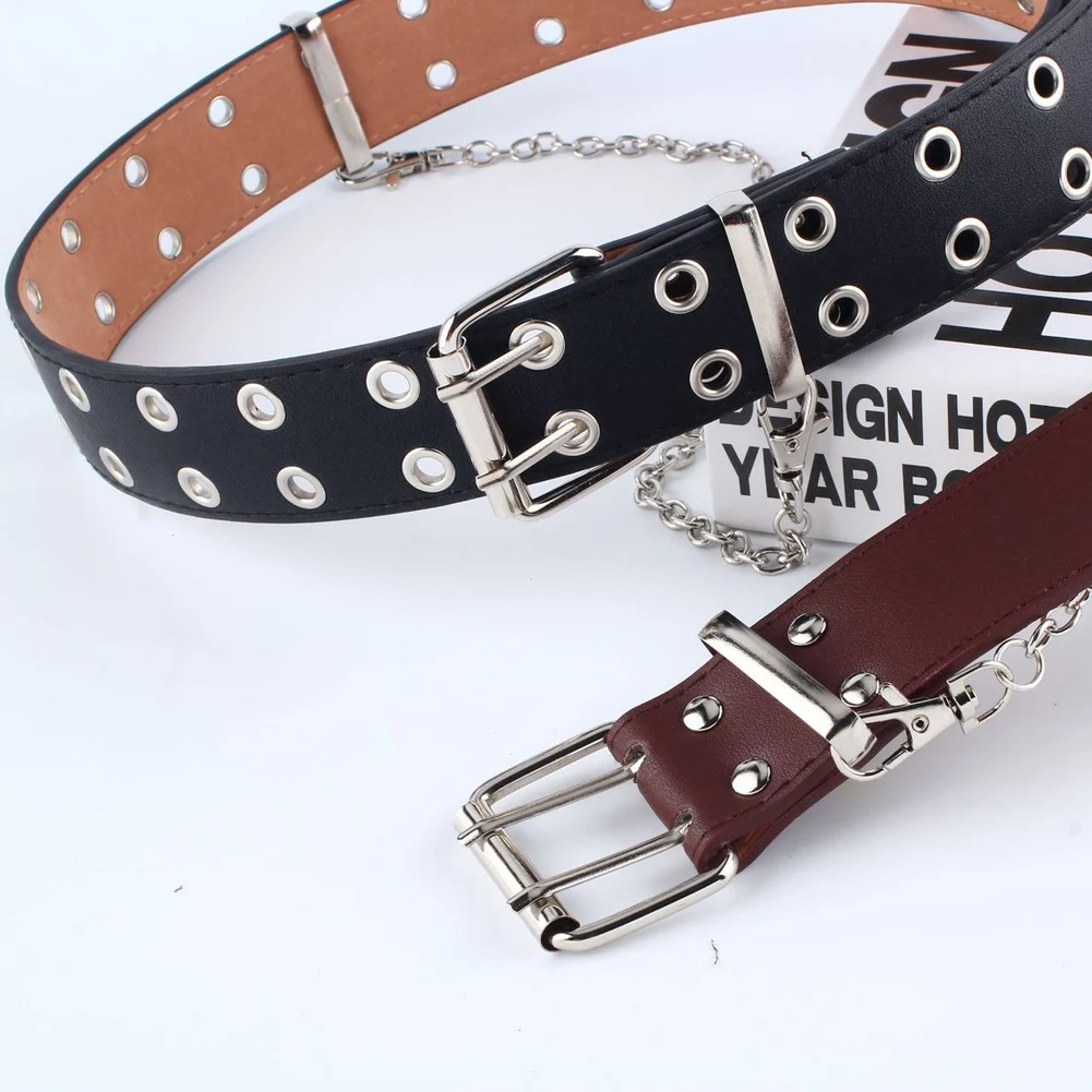 Модная Панк цепь Регулируемый двойной/одиночный люверс втулка кожаный ремень с пряжкой