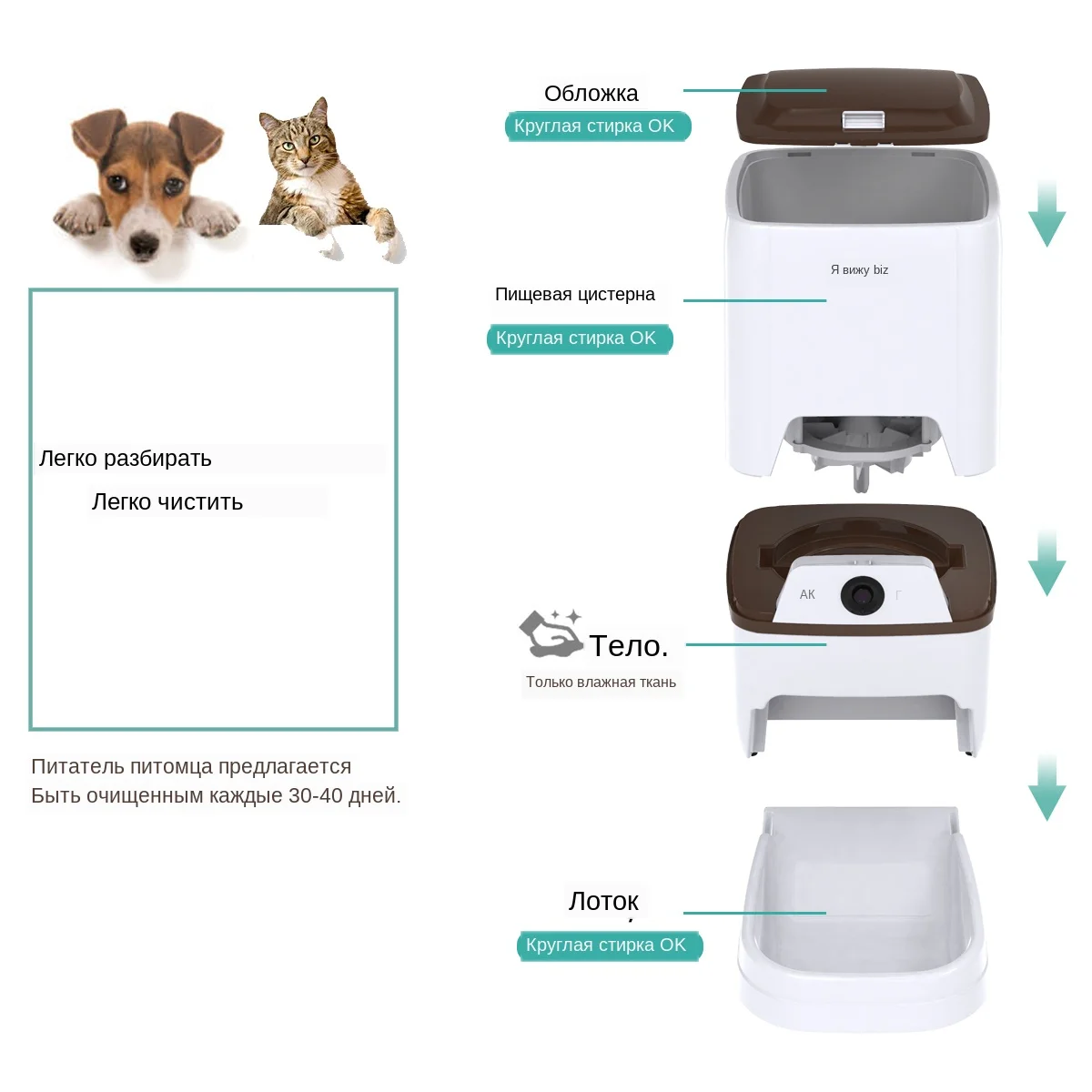 ➤➤➤ 【Настройка порции кормления】 Интеллектуальная кормушка Iseebiz Smart Feeder обеспечивает до 6 приемов пищи в день, гибкие порции от 1 до 20 на прием, по 5 г на каждую порцию, а большая емкость 6 литров может вместить достаточно сухого корма для вашего меха дитя. Регулярное кормление, здоровое питание! ➤➤ 【Смотрите, говорите, слушайте и делитесь】 С помощью приложения Iseebiz вы можете следить за своим питомцем, делать фотографии и записывать видео в любое время в любом месте; поговорите со своим питомцем и услышите его звук; поделитесь своей учетной записью со своей семьей, чтобы одновременно войти в систему, чтобы вы могли видеть своего питомца с семьей, оставаться на связи со своим меховым ребенком, когда вас нет дома. ➤ 【Простая настройка и совместимость с Alexa】 Просто следуйте инструкциям, чтобы подключить Iseebiz Smart Feeder к домашней сети Wi-Fi 2,4 ГГц (не поддерживает 5 ГГц), а затем управляйте своим устройством подачи на мобильном устройстве в любое время в любом месте. Если у вас есть какие-либо устройства Amazon Alexa, добавьте Iseebiz к своим навыкам Alexa, дайте дополнительную закуску своему меховому ребенку с помощью Alexa, когда вы дома. ➤ 【Встроенный ИК-детектор】 Для того, чтобы ваш питомец был доволен едой, ИК-детектор будет располагаться под прямым углом, чтобы предотвратить засорение или переполнение корма. Только учтите, что размер сухого корма не должен превышать 1 см³. ➤ 【Варианты двойного источника питания】 Питатель может питаться от адаптера питания или 3-х D-батарей (не входят в комплект). Батареи могут поддерживать его работу более 3 месяцев, не беспокойтесь о сбое питания, когда вас нет дома. 【В режиме только батарей кормушка будет кормить вашего питомца в соответствии с расписанием, которое вы установили ранее, но функции в приложении и функция Wi-Fi не будут работать】.