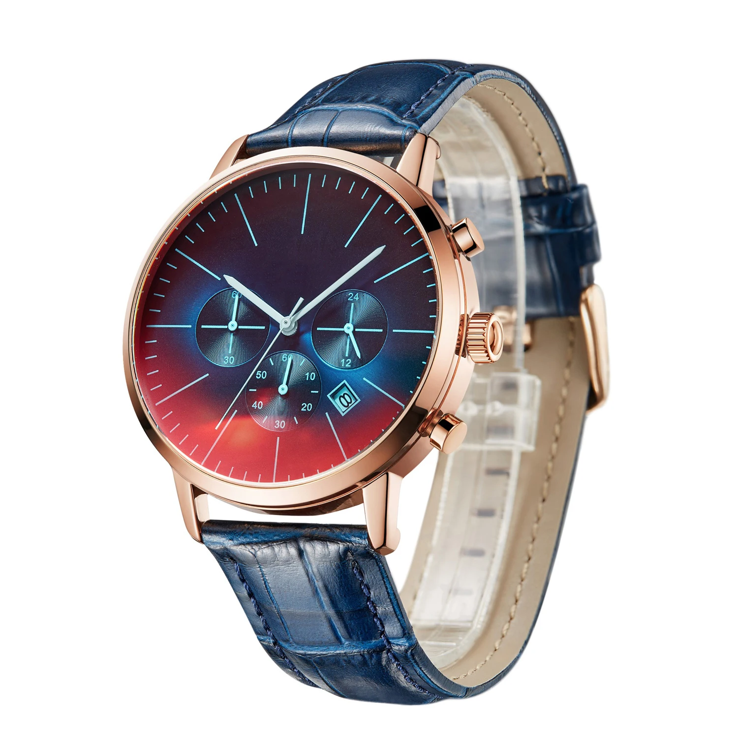 -100% новый с биркой и высоким качеством -3 АТМ/30 М Водонепроницаемость (поддержка холодного душа и плавания, не использовать часы под водой, не поддерживать горячую воду); -Функция хронографа 24 часа и автоматическое отображение даты -Корпус из качественного сплава