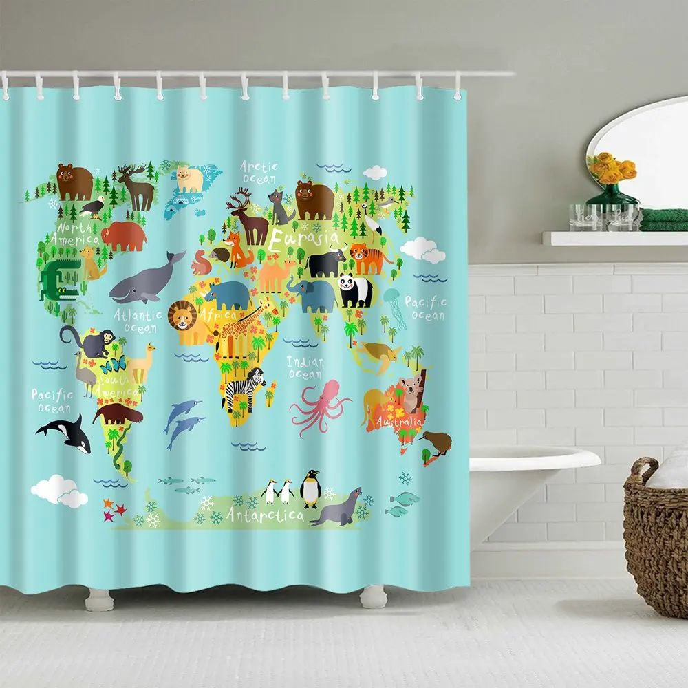 Детская штора Dafield с милым забавным мультяшным динозавром, морской мир, сова, Карта мира, морская ткань, ванная комната для мальчиков и девочек, детская занавеска для душа, занавеска