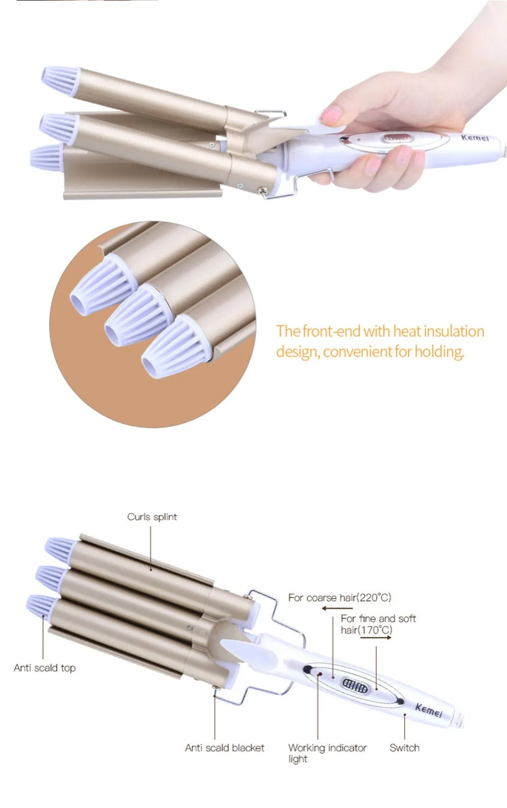 110-220 В керамические бигуди для волос титановая шина Тройная бочка перманентные щипцы для завивки Ролики Инструменты для укладки