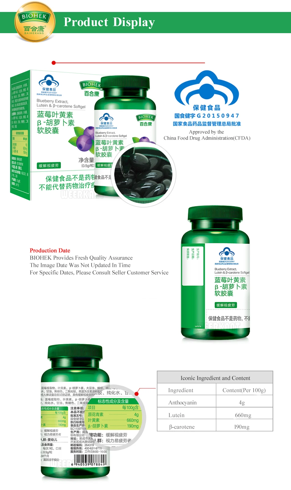 Ваш предельный антиоксидантЭтот провитамин А, который содержится в различных фруктах и овощах, славится тем, что морковь придает насыщенный апельсиновый вкус.Легко преобразует витамин а в систему при необходимости.Помогает поддерживать здоровье глаз.Поддерживает иммунную систему.Обеспечивает антиоксидантные преимущества для сердца и других органов.Помогает поддерживать кожу и Здоровье волос.** Эти утверждения не были оценены китайским Управлением по контролю за продуктами питания и лекарствами (CFDA). Эти продукты не предназначены для диагностики, лечения, лечения или предотвращения любых заболеваний.Направления:Для взрослых, возьмите один (1) софтгель ежедневно, предпочтительно с едой.Другие ингредиенты:Экстракт черники, лютеин, бета-каротинПредупреждение:Если вы беременны, кормите, принимаете какие-либо лекарства или имеете какое-либо медицинское состояние, проконсультируйтесь с врачом перед использованием. Прекратите использование и обратитесь к врачу, если возникнут какие-либо побочные реакции. Хранить в недоступном для детей месте. Хранить при комнатной температуре. Не используйте, если печать под крышкой сломана или отсутствует.