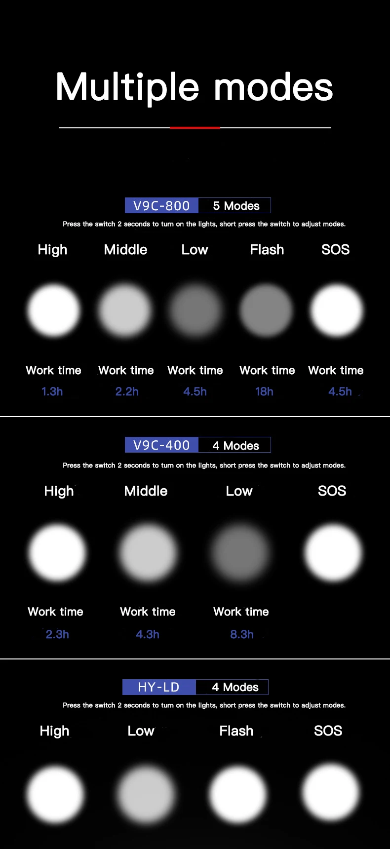 · Нажмите переключатель 2 секунды, чтобы включить свет (яркость по умолчанию