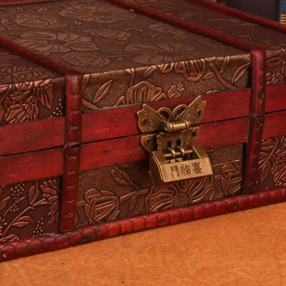 Винтажная настольная коробка для хранения книг с деревянным узором, коробка для ювелирных изделий с замком, деревянная коробка для хранения для принцессы в случайном стиле