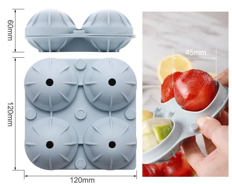Большой лоток для льда-Наши силиконовые Сфера морозильник плесень создает четыре 4,5 см/1.7in большой ледяных шариков. Больше, чем новинка, большой лед плавится/разжимается медленнее, что делает их идеальными для вашего старомодного, шотландского, бурбонового или смешанного виски.