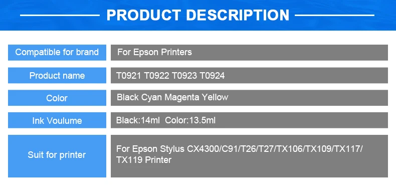 Работает для Epson Stylus T26 T27 TX106 TX109 TX110 TX117 TX119 CX4300 C91. ..... принтер