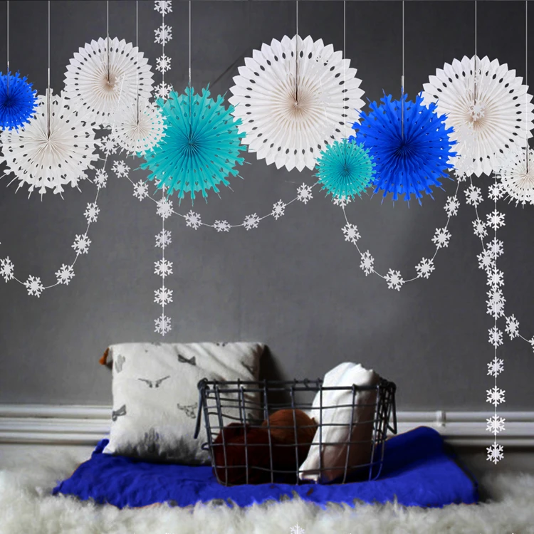 Упаковка и Количество:12Компл./лот(10 шт бумажный вентилятор,2 упаковкиСнежинки гирлянды )