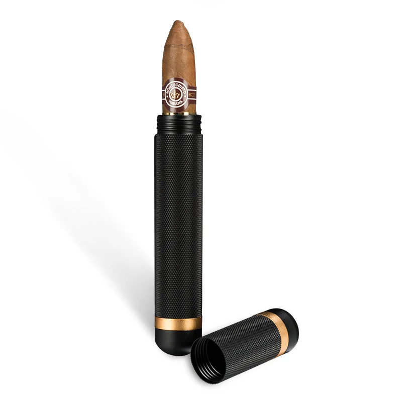 Бесплатная доставка гаджет портативный одиночный авиационный алюминиевый чехол для сигар держатель Мини Humidor CLI-8316