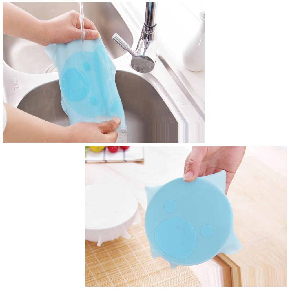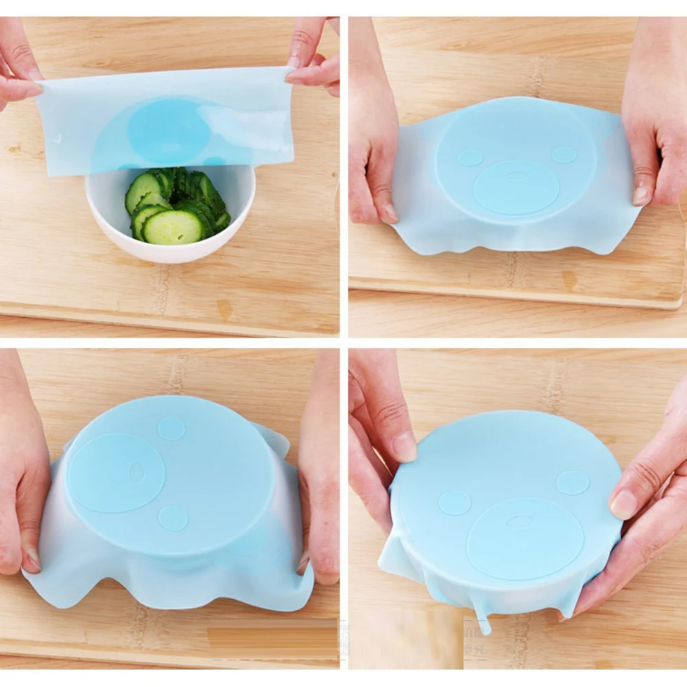 Мультипликационный рисунок, растягивающаяся Силиконовая крышка, многоразовые свежие крышки для хранения продуктов, подходят для различных размеров и форм контейнеров