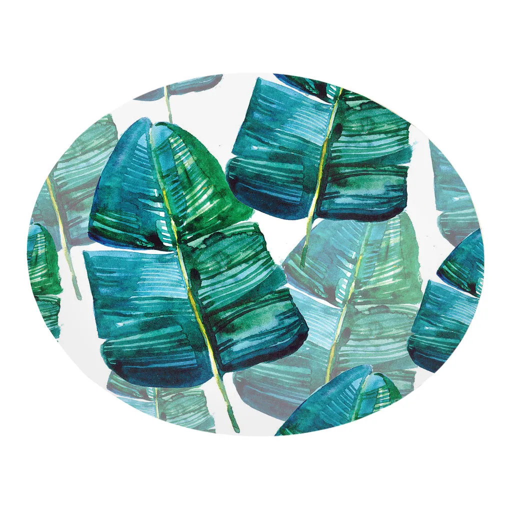 Круглый фланелевый коврик для ванной комнаты 60 см с рисунком тропических листьев растений